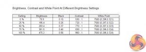 - A monitor’s contrast ratio at various brightness levels in the OSD.