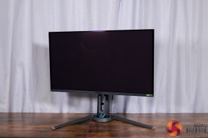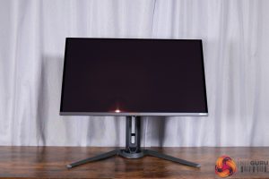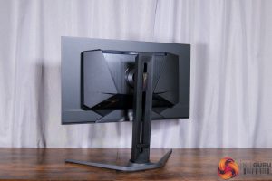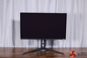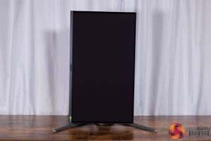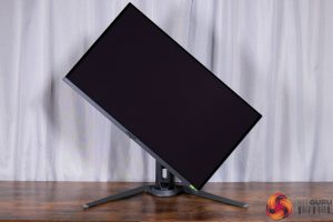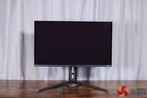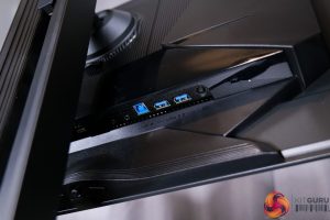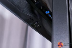 All of the monitor's controls are placed under the chin, with a joystick used to navigate the OSD flanked by a power button and a resolution switch button.