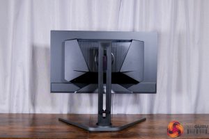 Starting off with the design of the FO27Q5P, if you've seen other Gigabyte screens from this generation, you will be very familiar with what is on offer here – it's entirely black, with a slightly aggressive gamer-y styling round the back, but generally it's fairly conventional.
