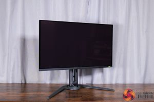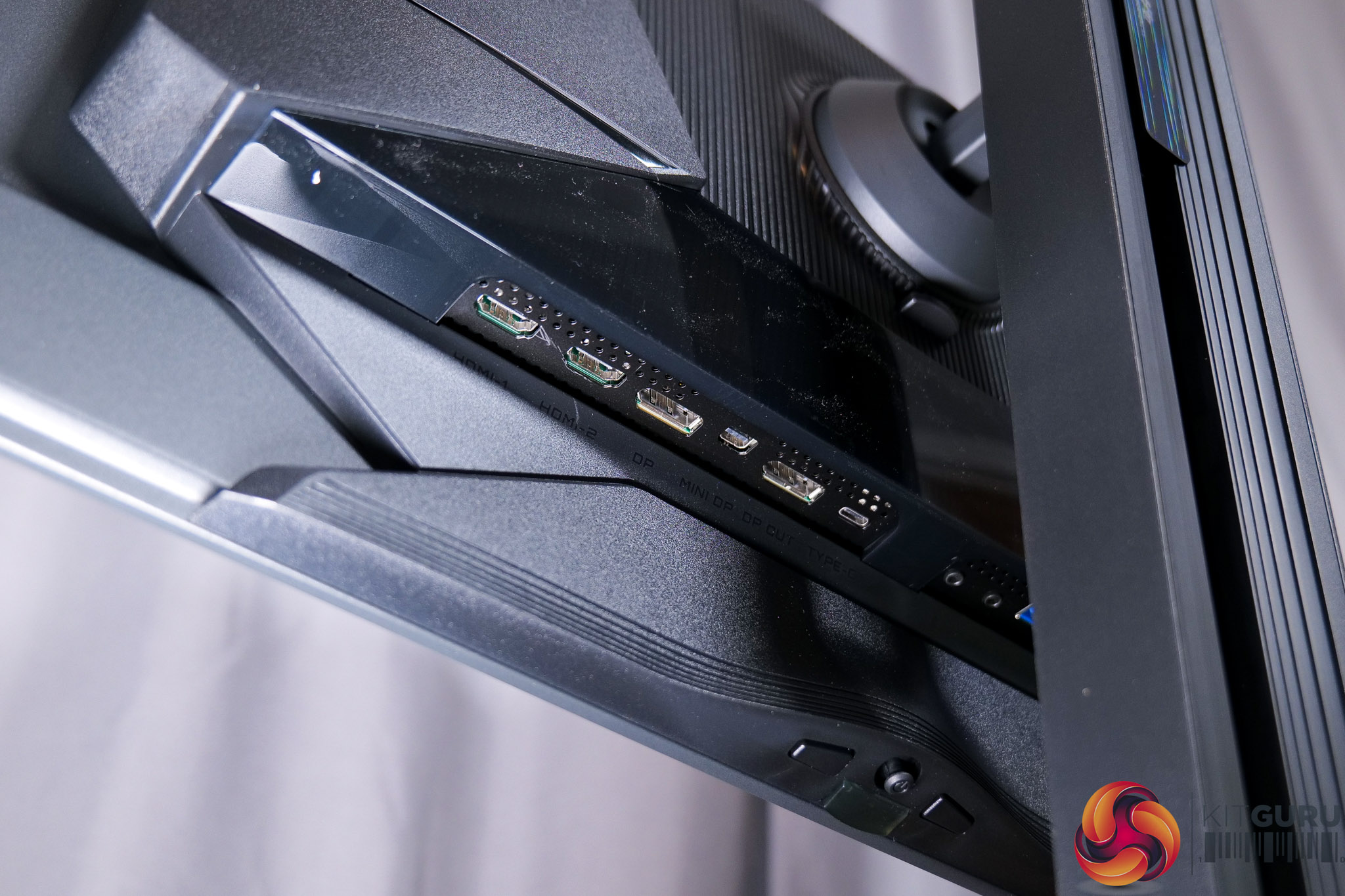 I/O is also plentiful. There's 2x HDMI 2.1, 1x DisplayPort 2.1 at the full UHBR20 bandwidth, a miniDP 2.1 at the same bandwidth – an oddity, but we're not complaining! – and a DisplayPort 1.4. You also get a Type-C port that supports DP-Alt mode and 18W Power Delivery, then 2x USB 3.2 downstreams, fed by a USB upstream, alongside some audio jacks. KVM functionality is also supported, so there's not much to complain about – I'd have liked to see higher Power Delivery from the Type-C port, but that's about it.