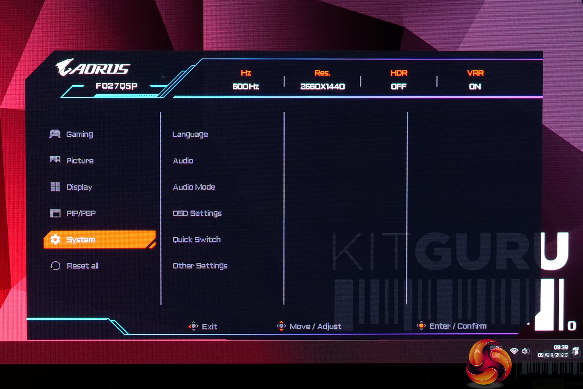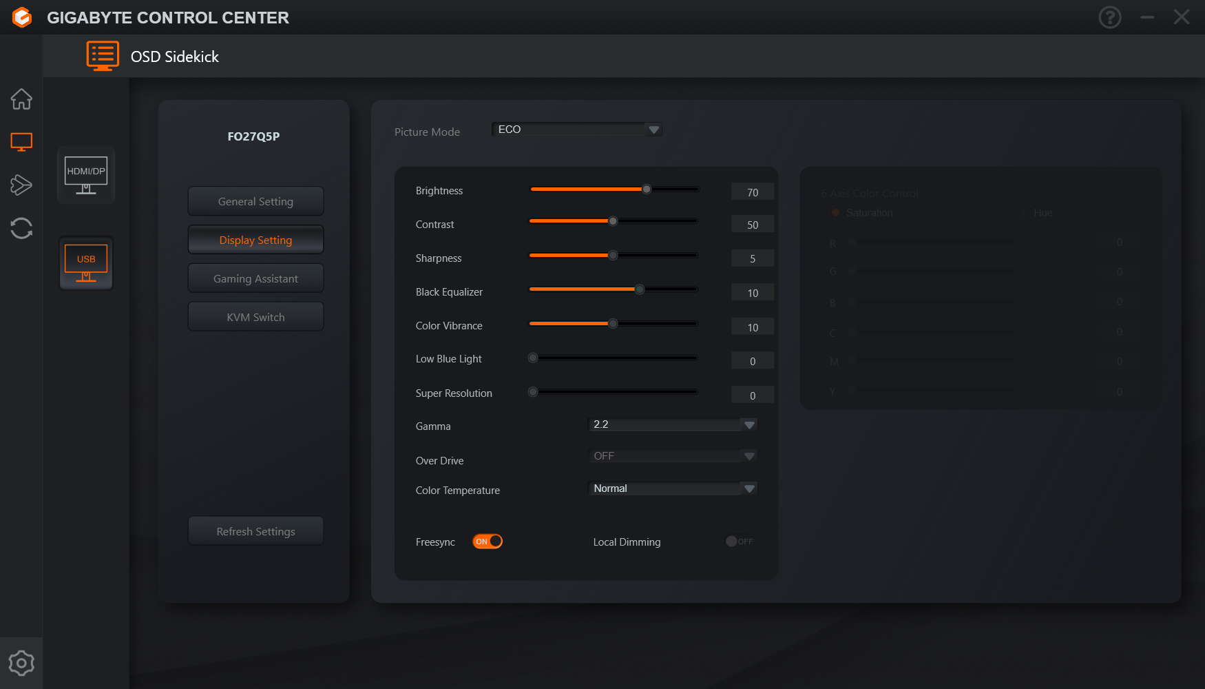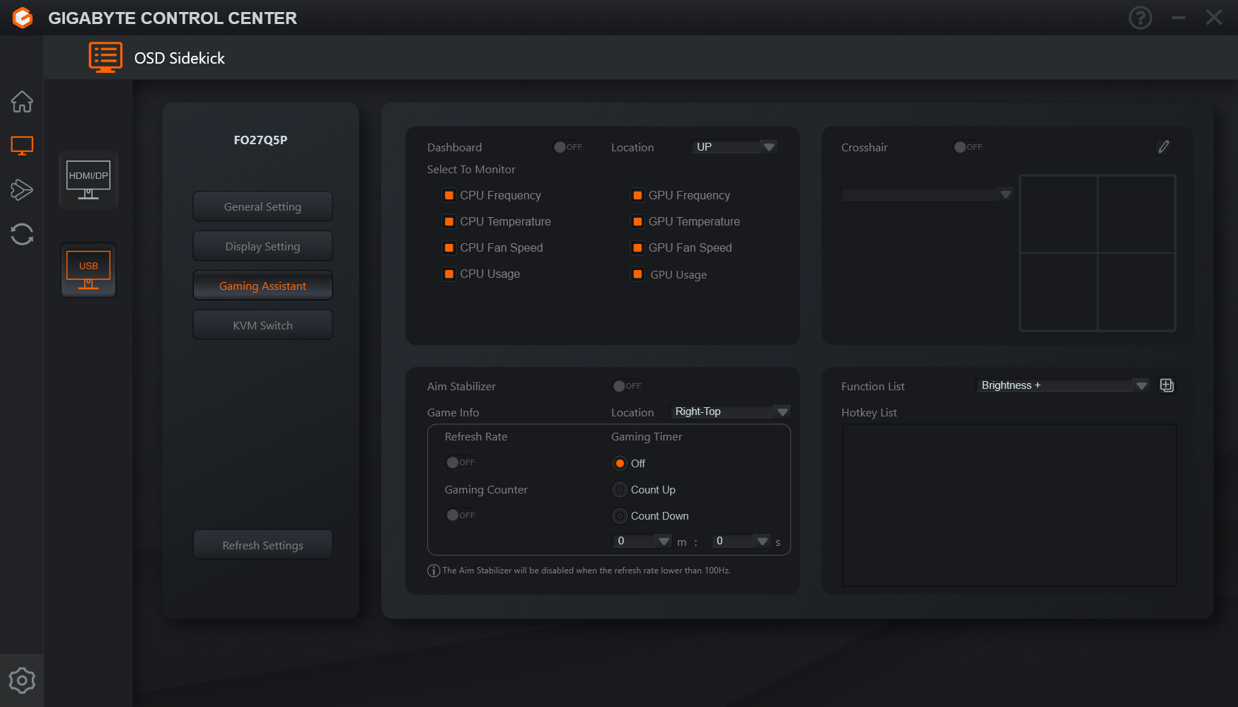 Users can also try Gigabyte's Control Center app, which offers most of the same settings but in software form. It's a little on the slow side, but it does at least provide information about monitor firmware, which is always useful.