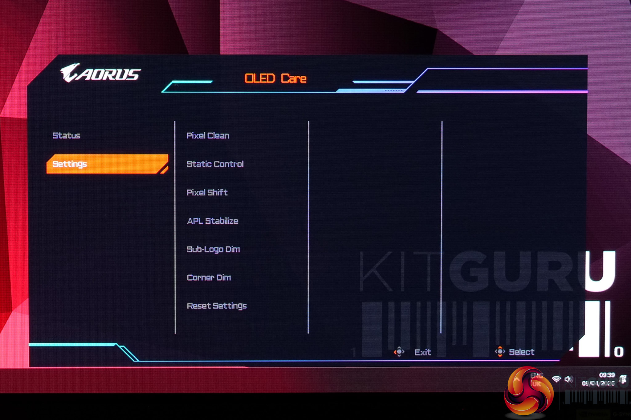 Speaking of the OSD, this is split into a few different areas, with the main settings options, but OLED Care and Game Assist in separate tabs: