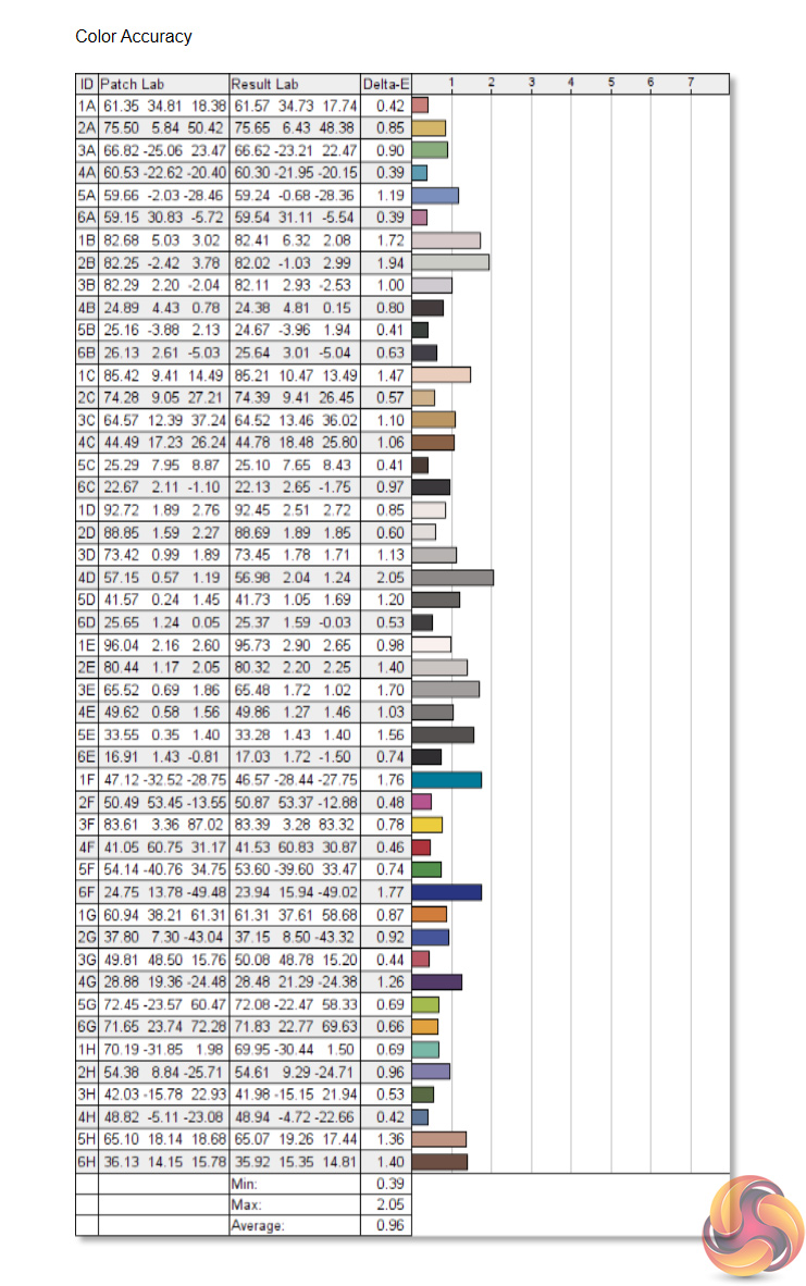 - The colour accuracy, expressed as a Delta E ratio, with a result under 3 being fine for normal use, and under 2 being great for colour-accurate design work.
