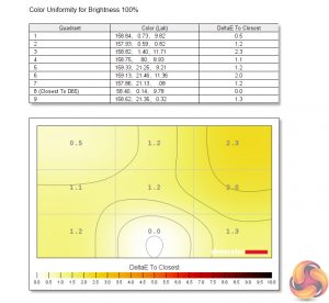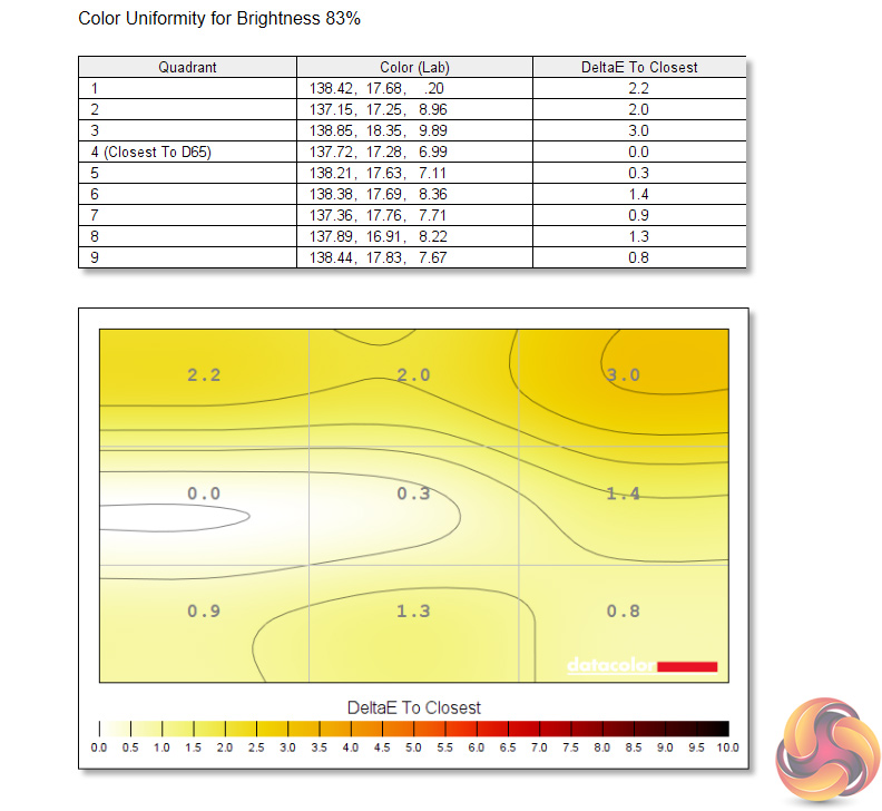 Colour uniformity is even better, with little variation across the board, with the top right corner diverging just slightly.