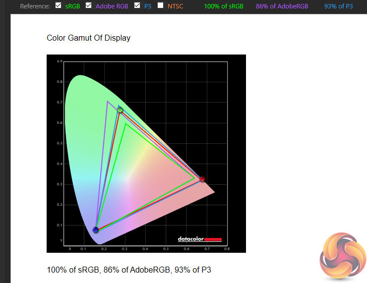 First of all, colour gamut barely changes – the screen still registers 100% sRGB and 86% AdobeRGB, though DCI-P3 coverage has dropped 1%, to 93%.