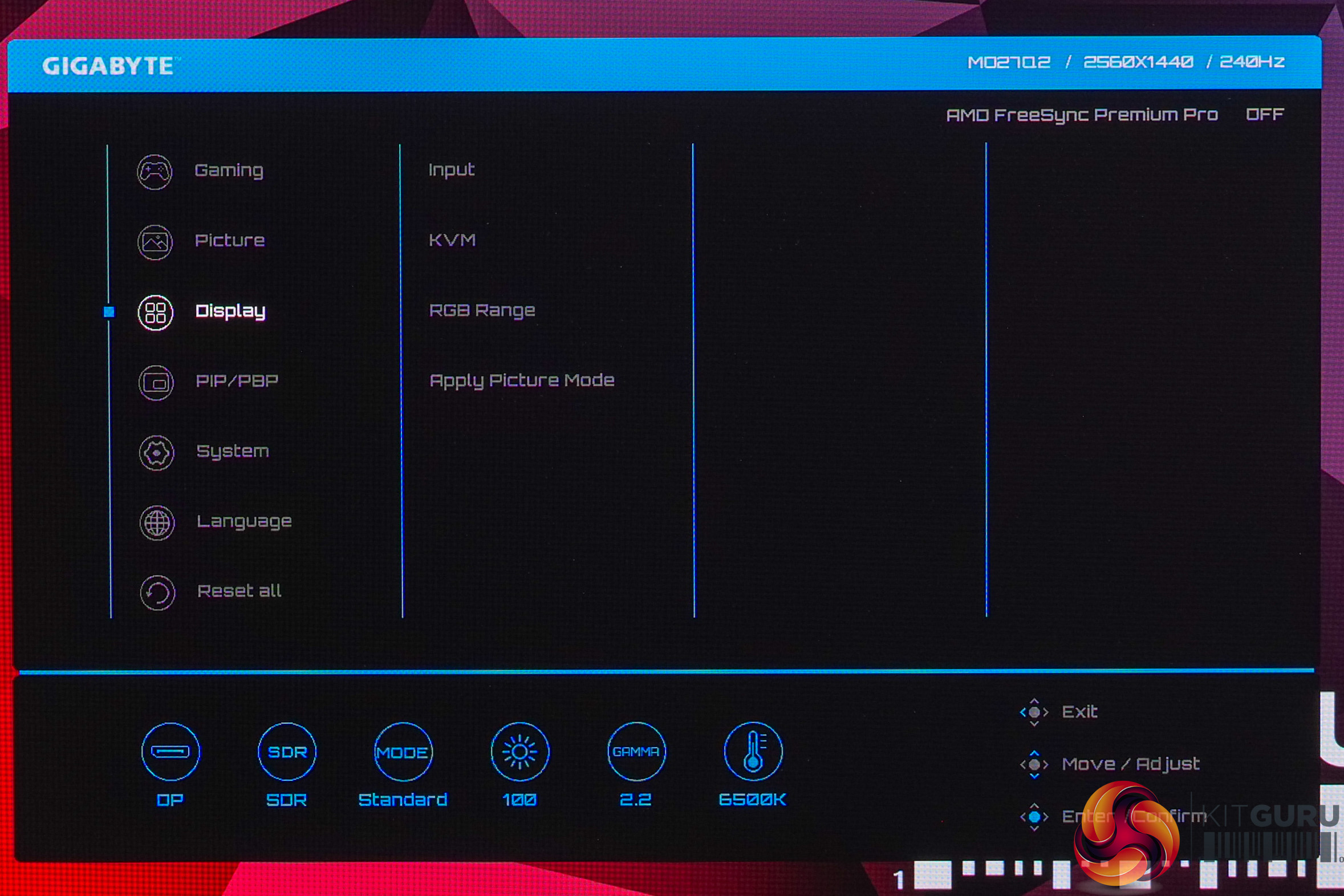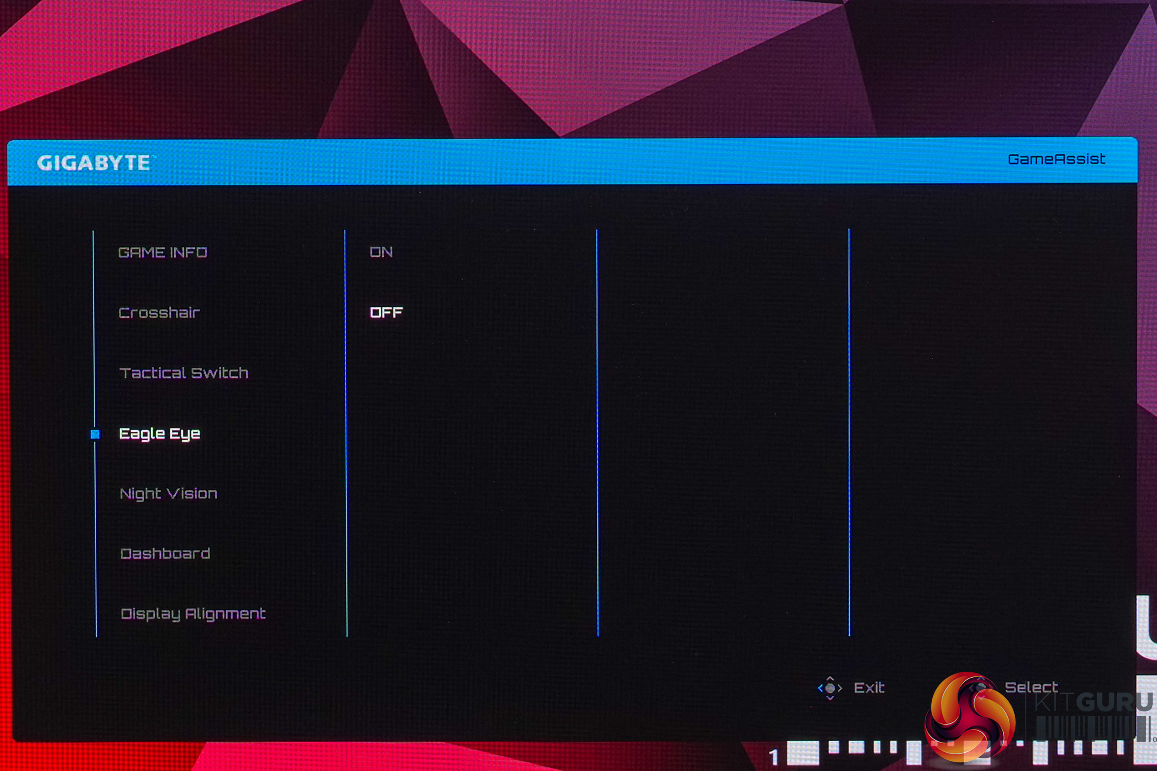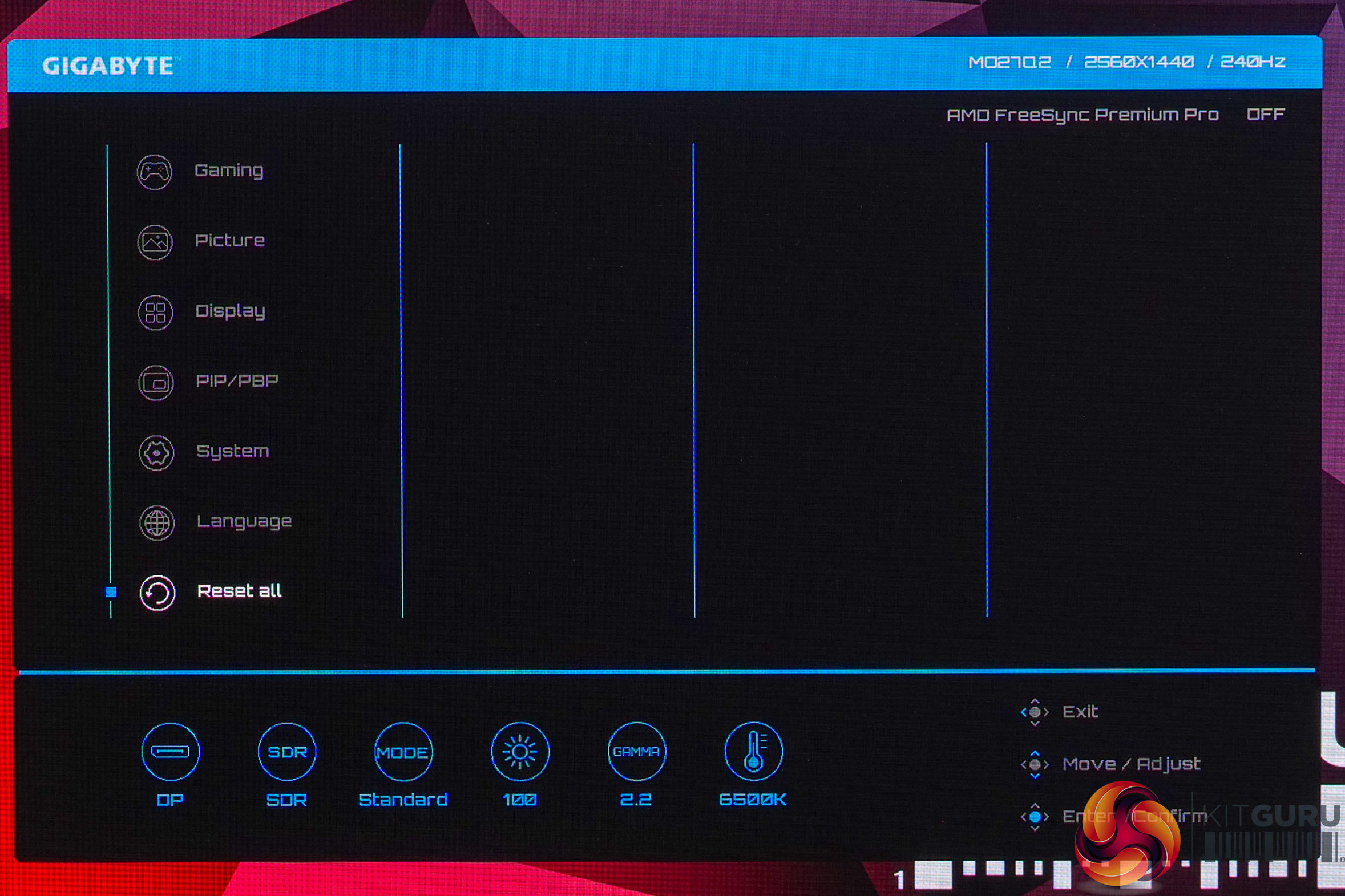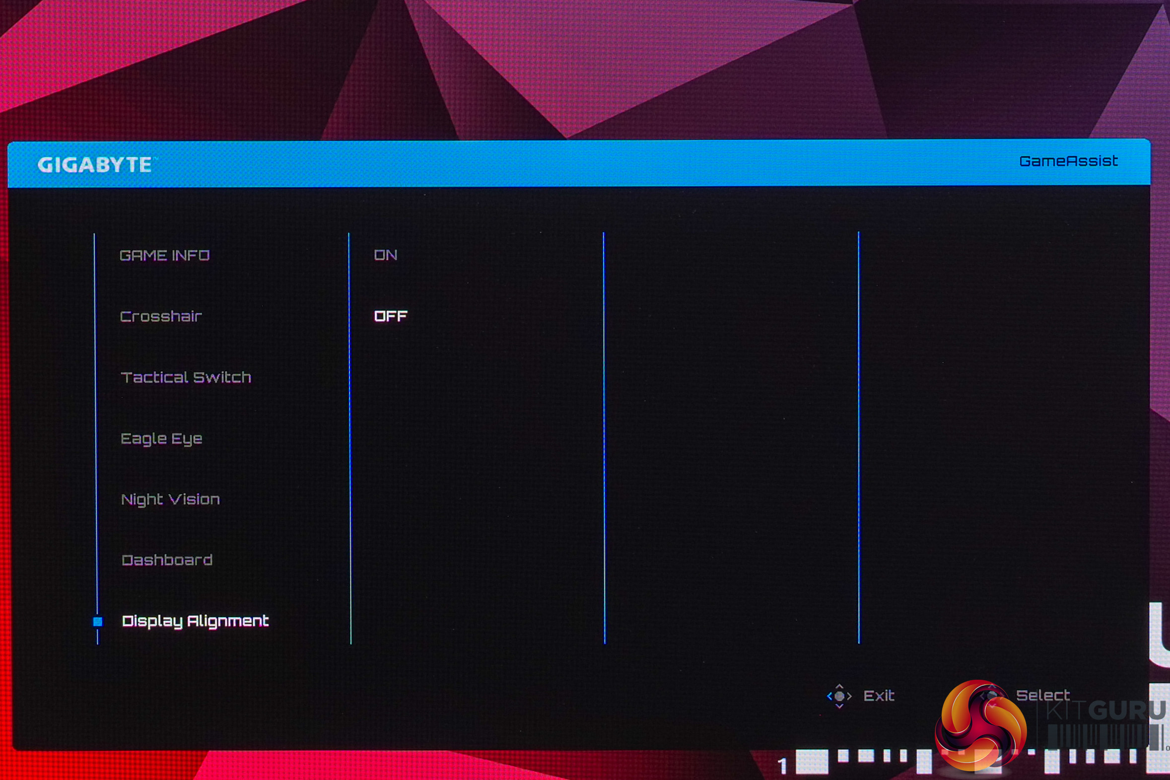 You can also use the Gigabyte Control Centre software to control the screen's options, giving you control over most functionality from your desktop. This also shows the current monitor firmware, but Gigabyte haven't yet confirmed to me if user-upgradable firmware is a possibility on this monitor, but we will be sure to update the review if we hear back.