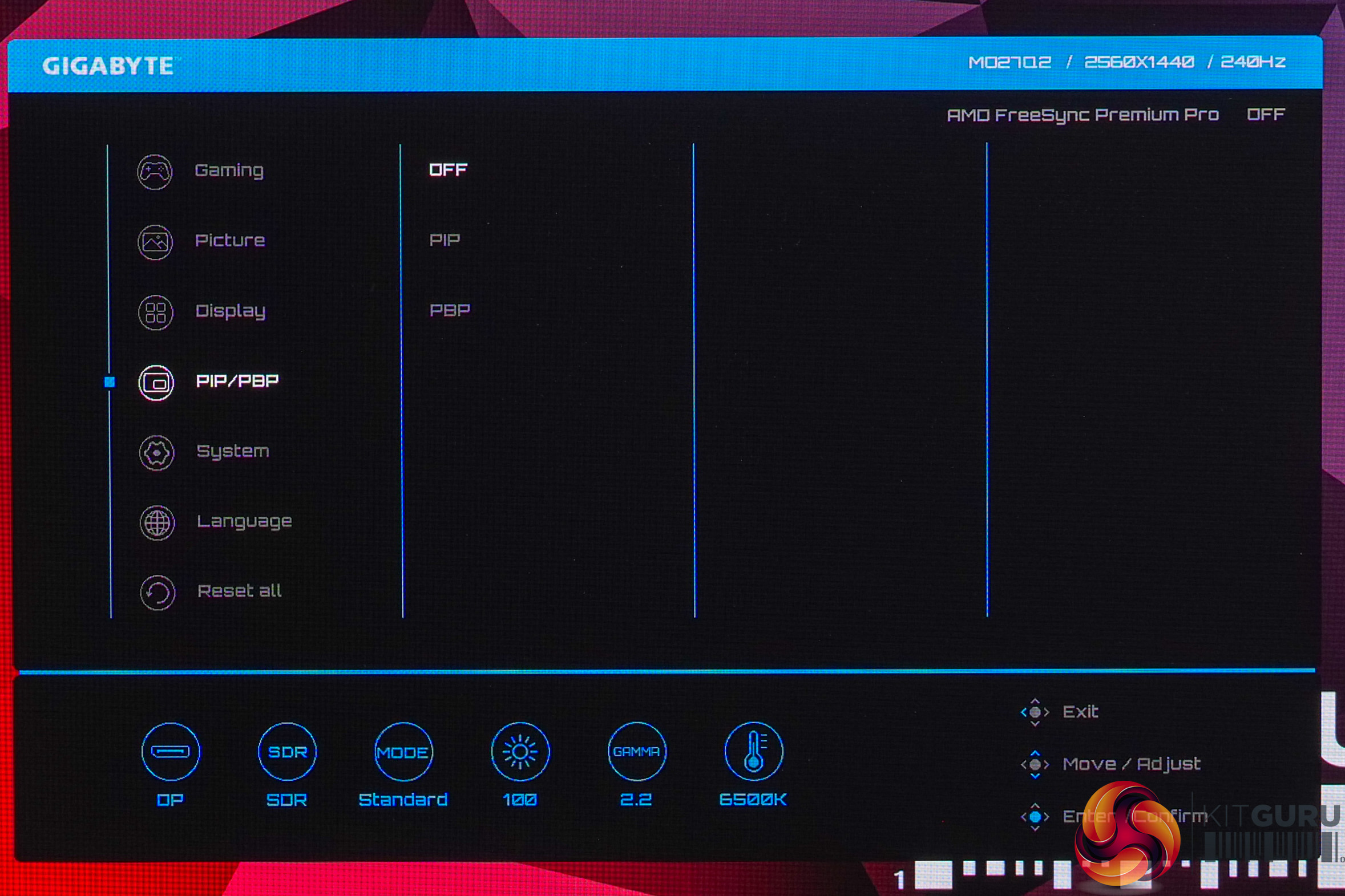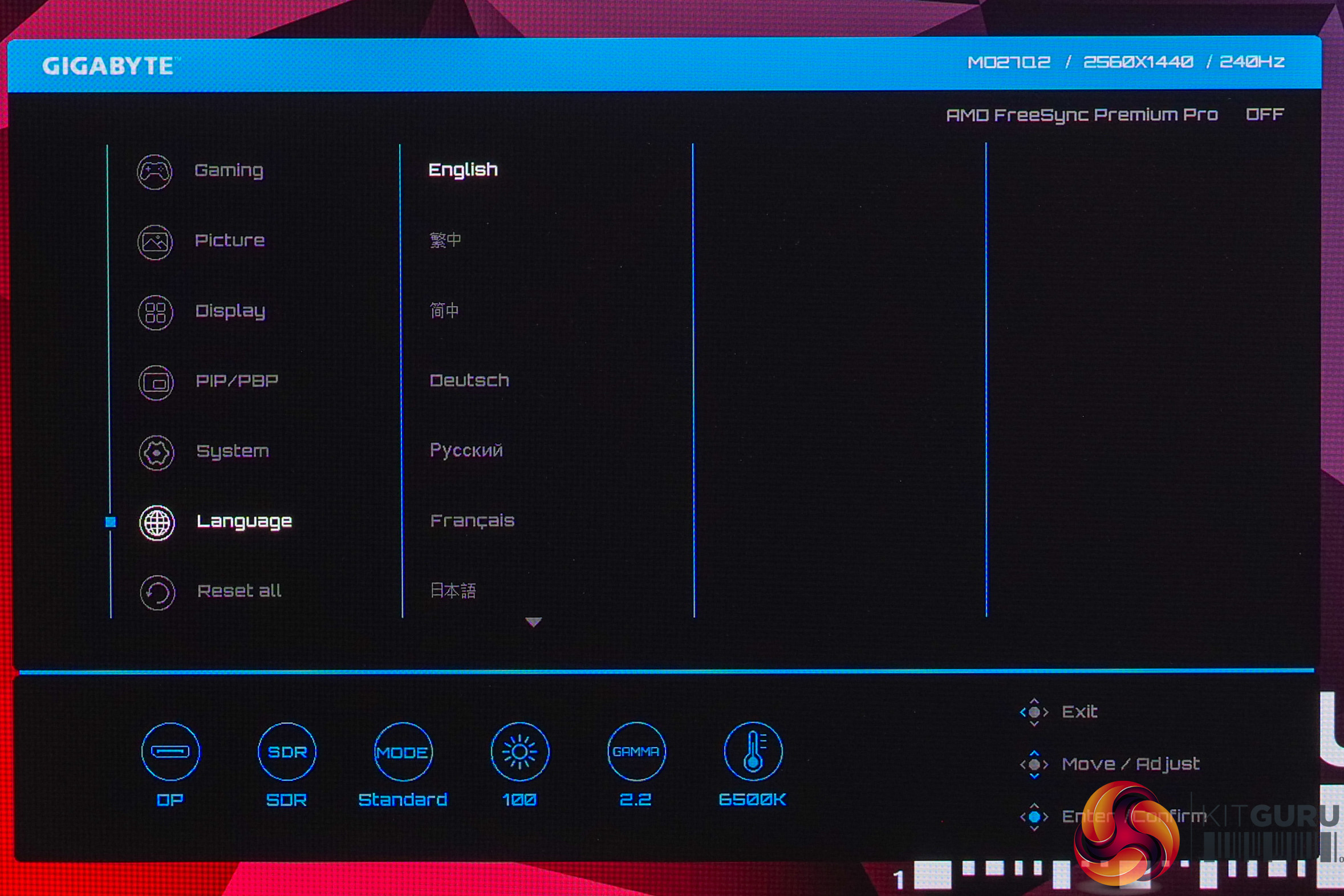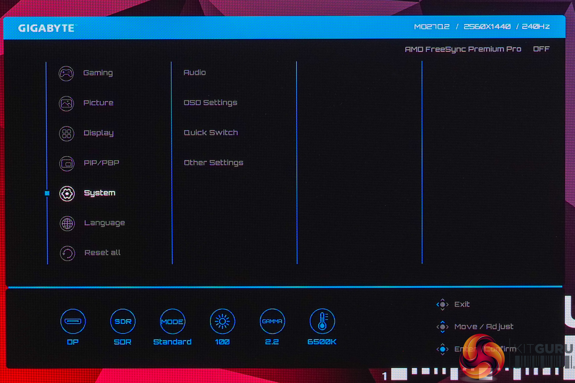 You can also use the Gigabyte Control Centre software to control the screen's options, giving you control over most functionality from your desktop. This also shows the current monitor firmware, but Gigabyte haven't yet confirmed to me if user-upgradable firmware is a possibility on this monitor, but we will be sure to update the review if we hear back.