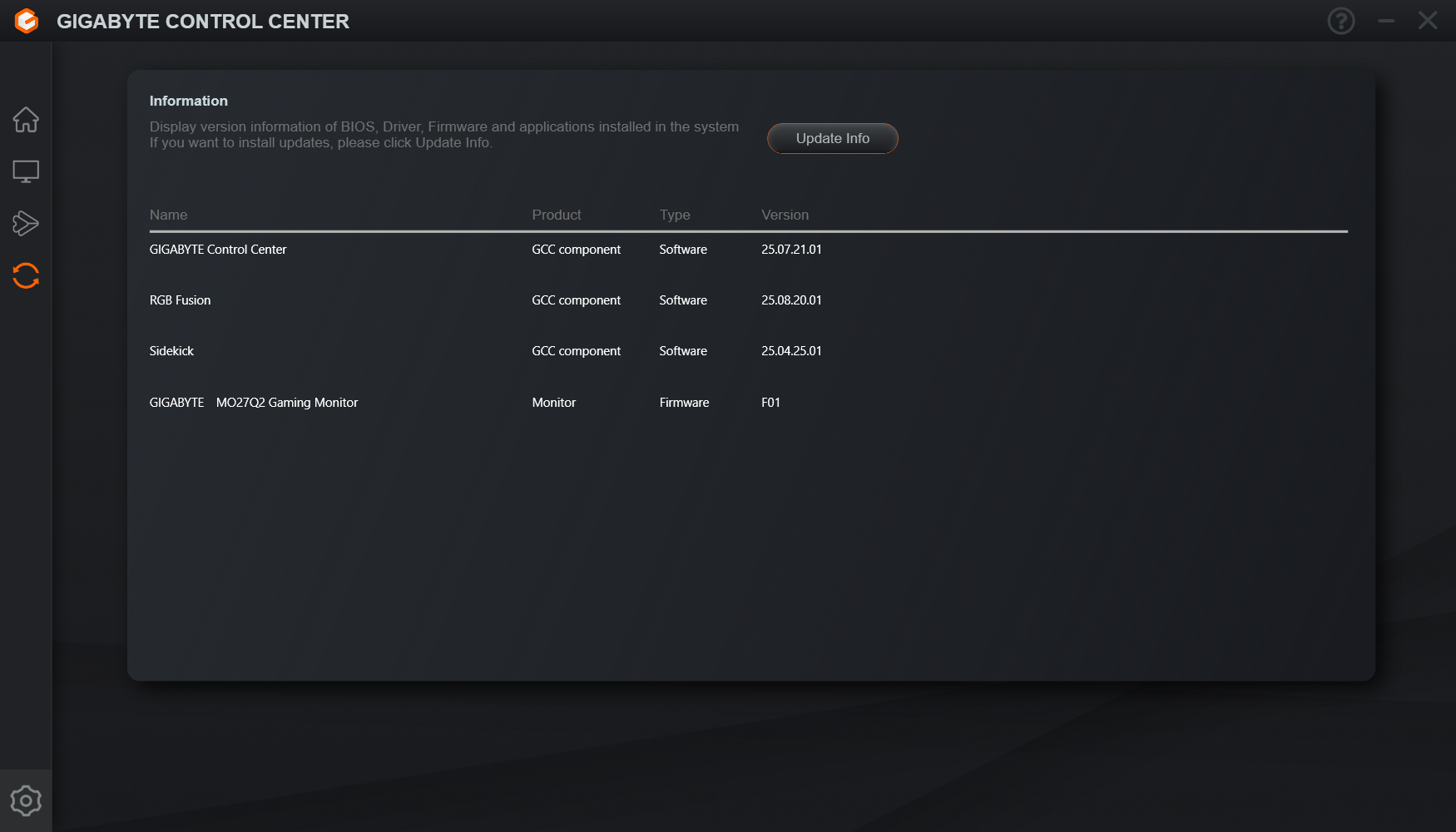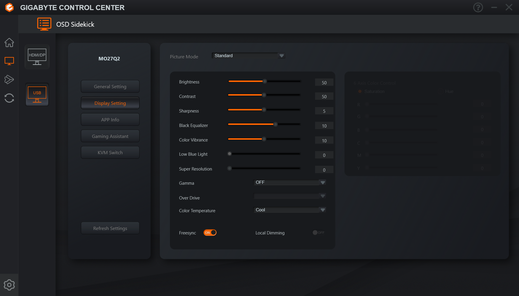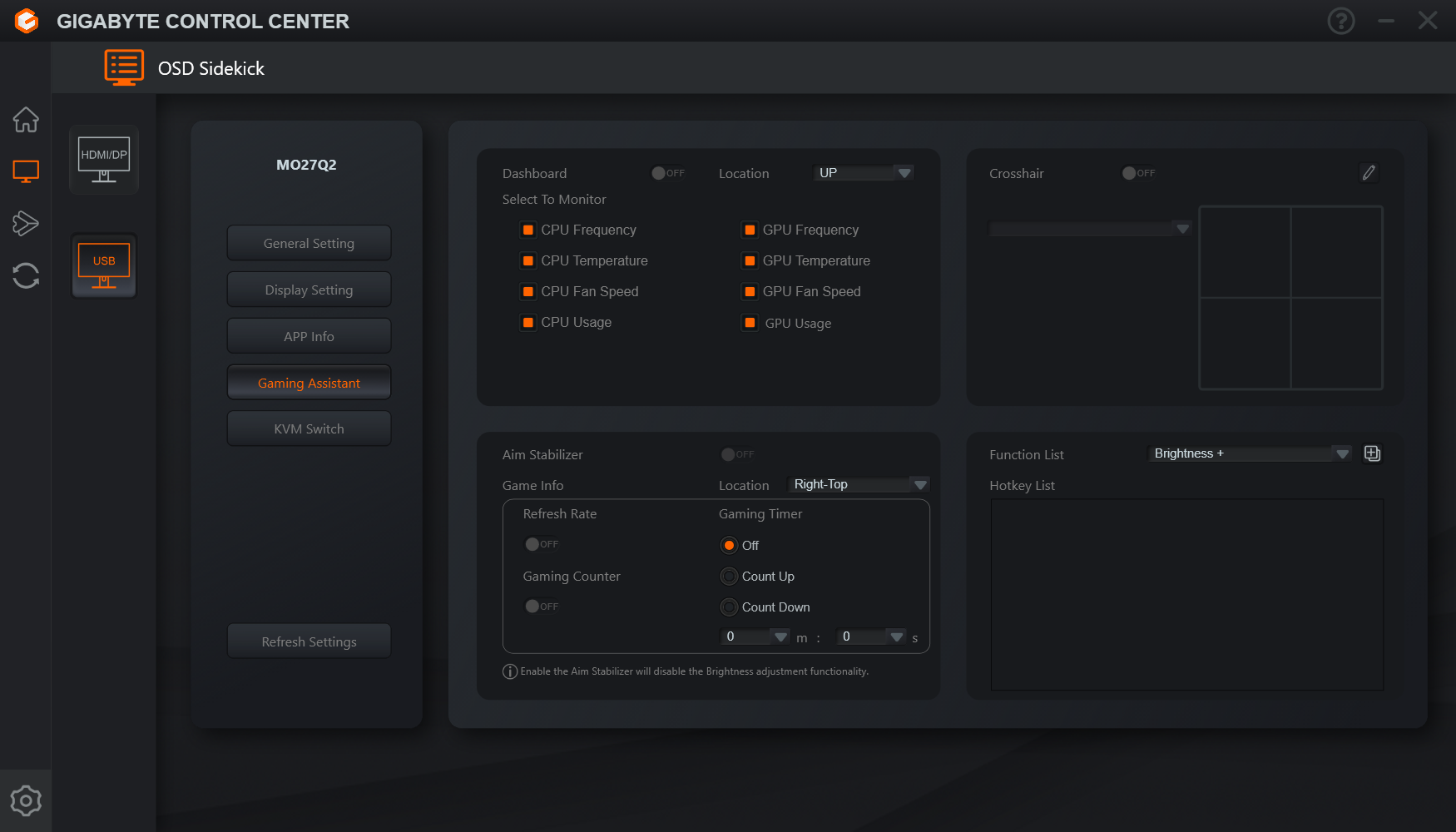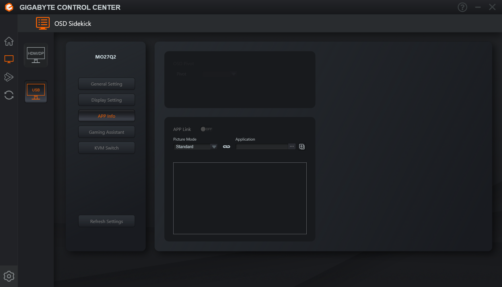 You can also use the Gigabyte Control Centre software to control the screen's options, giving you control over most functionality from your desktop. This also shows the current monitor firmware, but Gigabyte haven't yet confirmed to me if user-upgradable firmware is a possibility on this monitor, but we will be sure to update the review if we hear back.