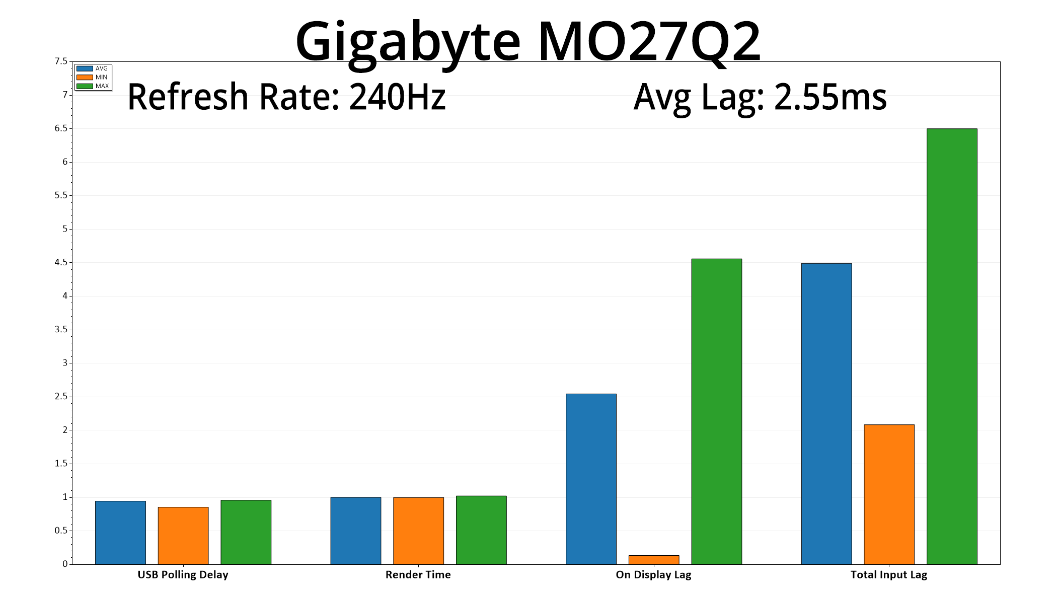 There's good news when looking at latency, too, given the MO27Q2 averaged 2.55ms. A single frame at 240Hz lasts for 4.17ms, so the latency here is equivalent to a little over half a frame – nothing at all to worry about.