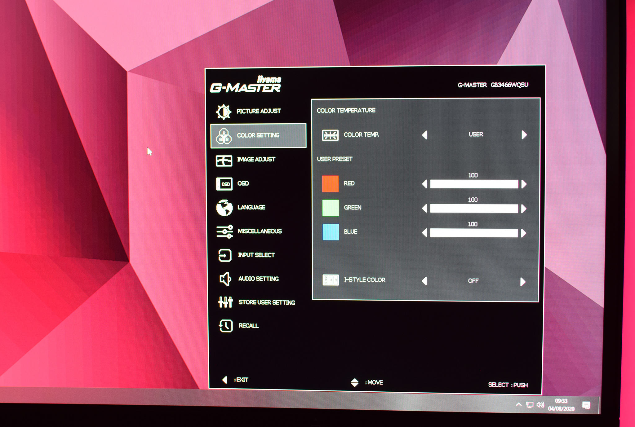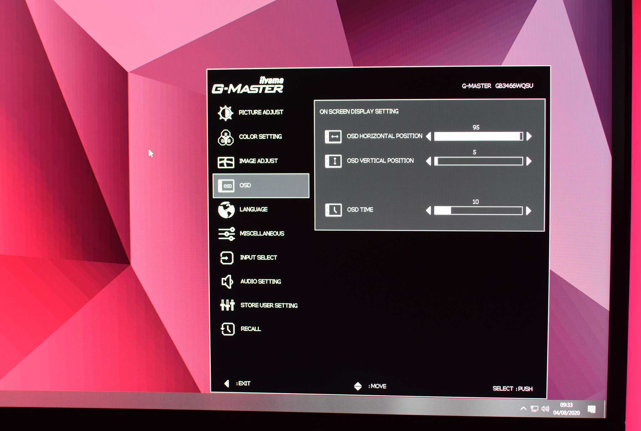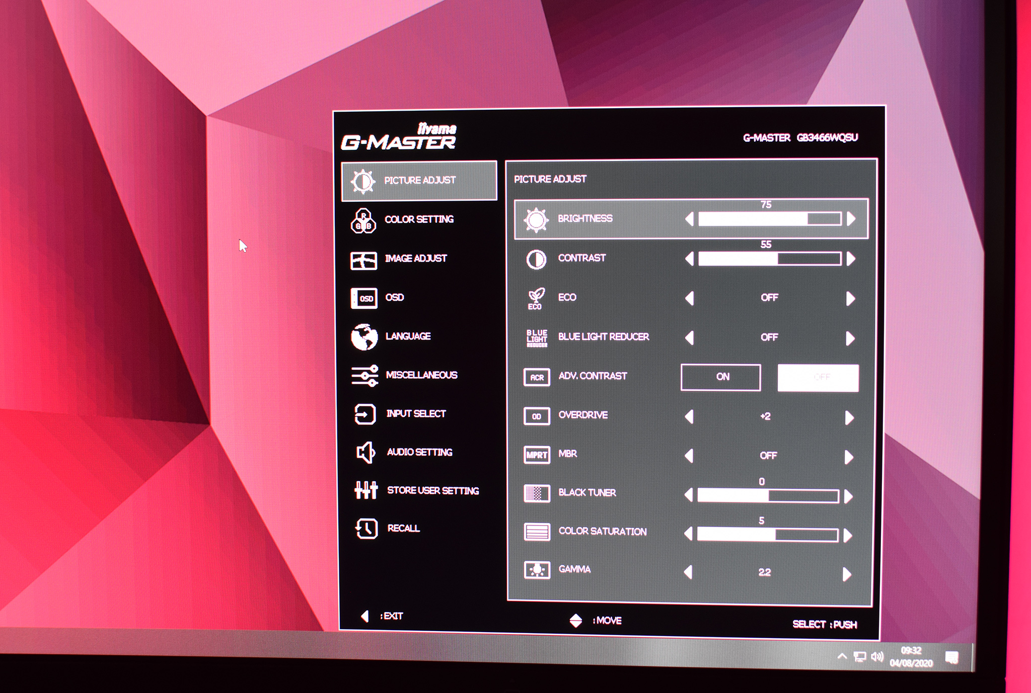 There's no doubt the overall layout of each menu is fairly text-heavy – especially the first couple of menus relating to colour and picture settings. However, it's easy to get to the setting you want to adjust with the joystick and I'd say there are no major omissions. I'd just like to be able to re-map the joystick shortcuts to adjust the key settings I want to adjust, instead of the options iiyama has selected for me.