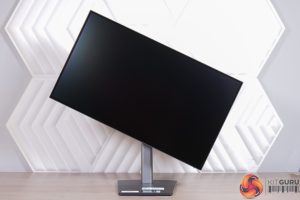 The stand packs in a great variety of ergonomic adjustments. We find up to 150mm height adjustment, tilt from -5 to +23 degrees, 90 degree pivot functionality, as well as 360-degree swivel – though do note this is achieved via a rotating disc in the base of the stand, so the whole thing moves on its axis, rather than just the panel itself swivelling left or right.