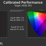 Still, an effective gamut clamp means saturation accuracy is much improved, with an average dE 2000 of 1.48, while colour accuracy also improves to 1.31 average. These are very good results, if not absolutely top tier.