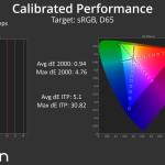 The same goes for colour accuracy, with an average dE2000 of 4.32 relative to the sRGB space, though this improves to an average deltaE of 2.02 when looking at the DCI-P3 results.