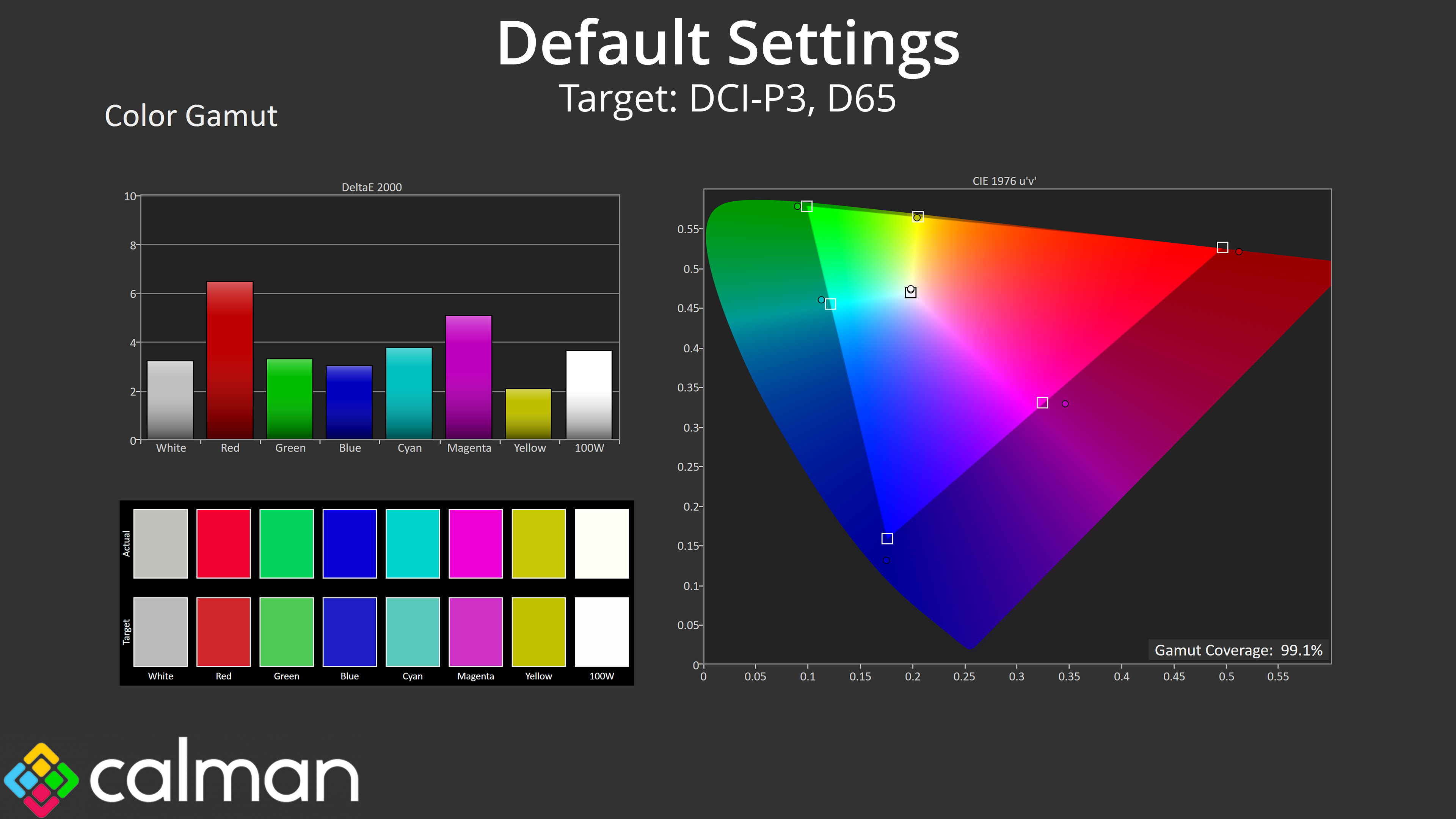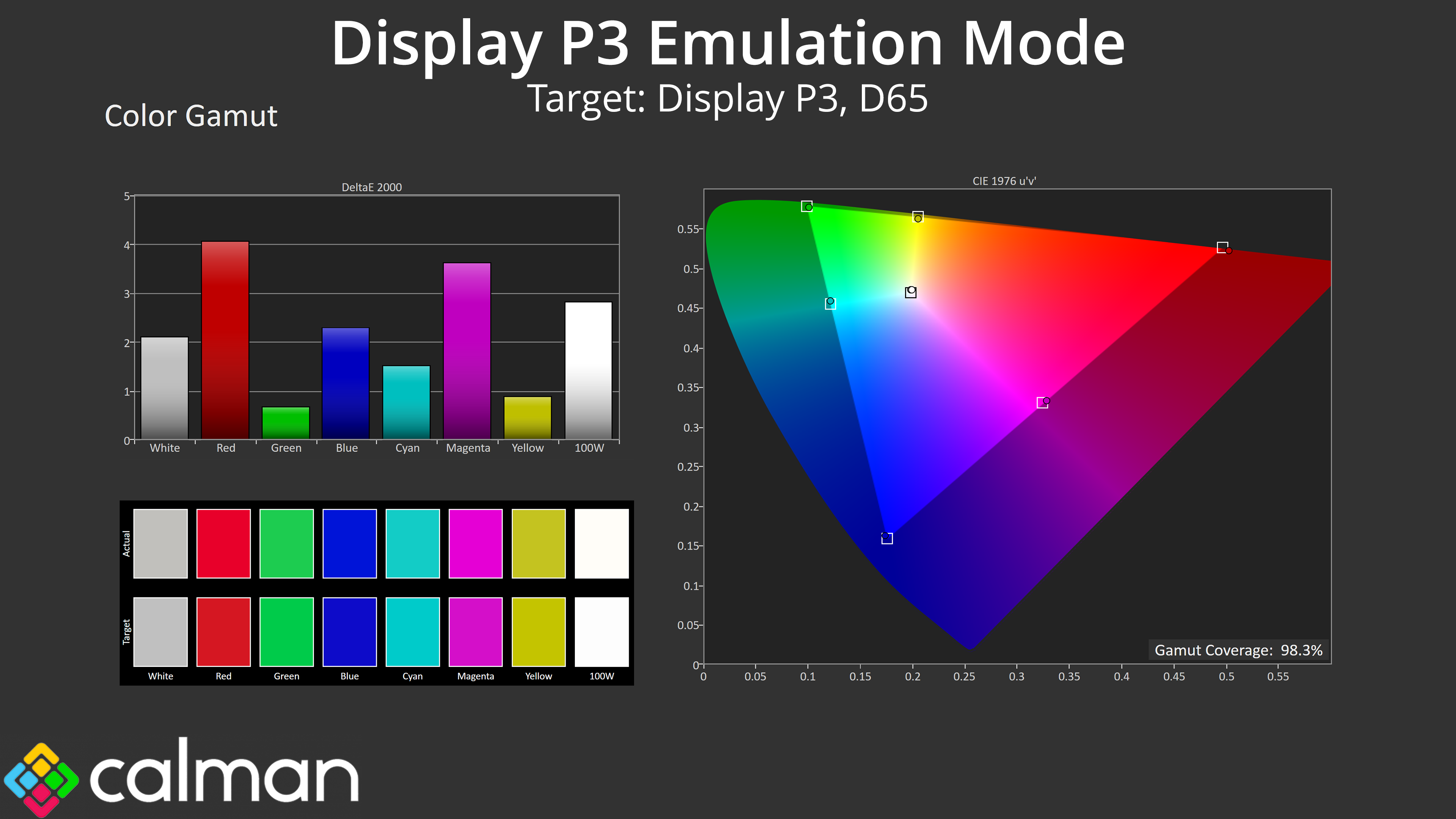 - Gamut coverage, primarily focusing on sRGB and DCI-P3 colour spaces.