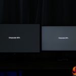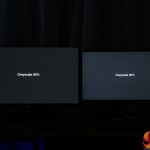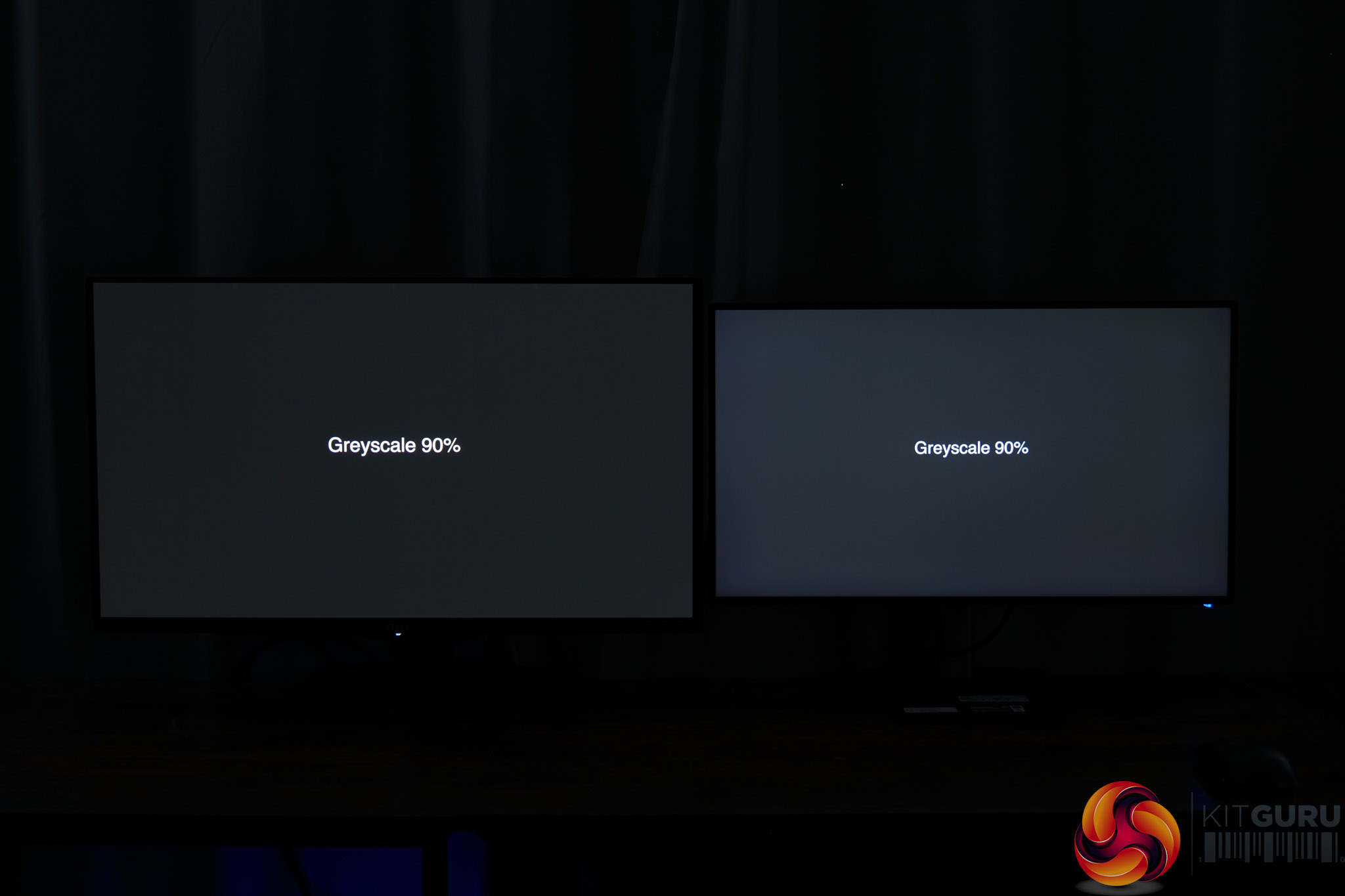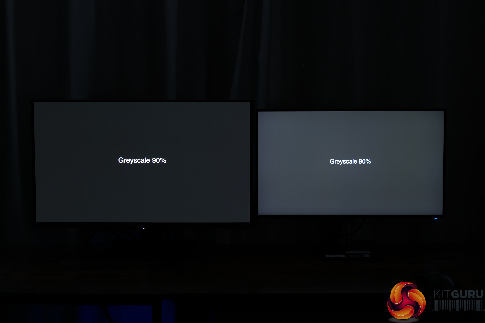 To illustrate this, I took two photos with the HB2701UHSNP side-by-side with a quality QD-OLED monitor. Out of the box, the iiyama monitor looks significantly brighter than it should when showing a 90% greyscale. Once we calibrated the HB2701UHSNP (and more on that below), the difference becomes much less apparent and the image is much darker.