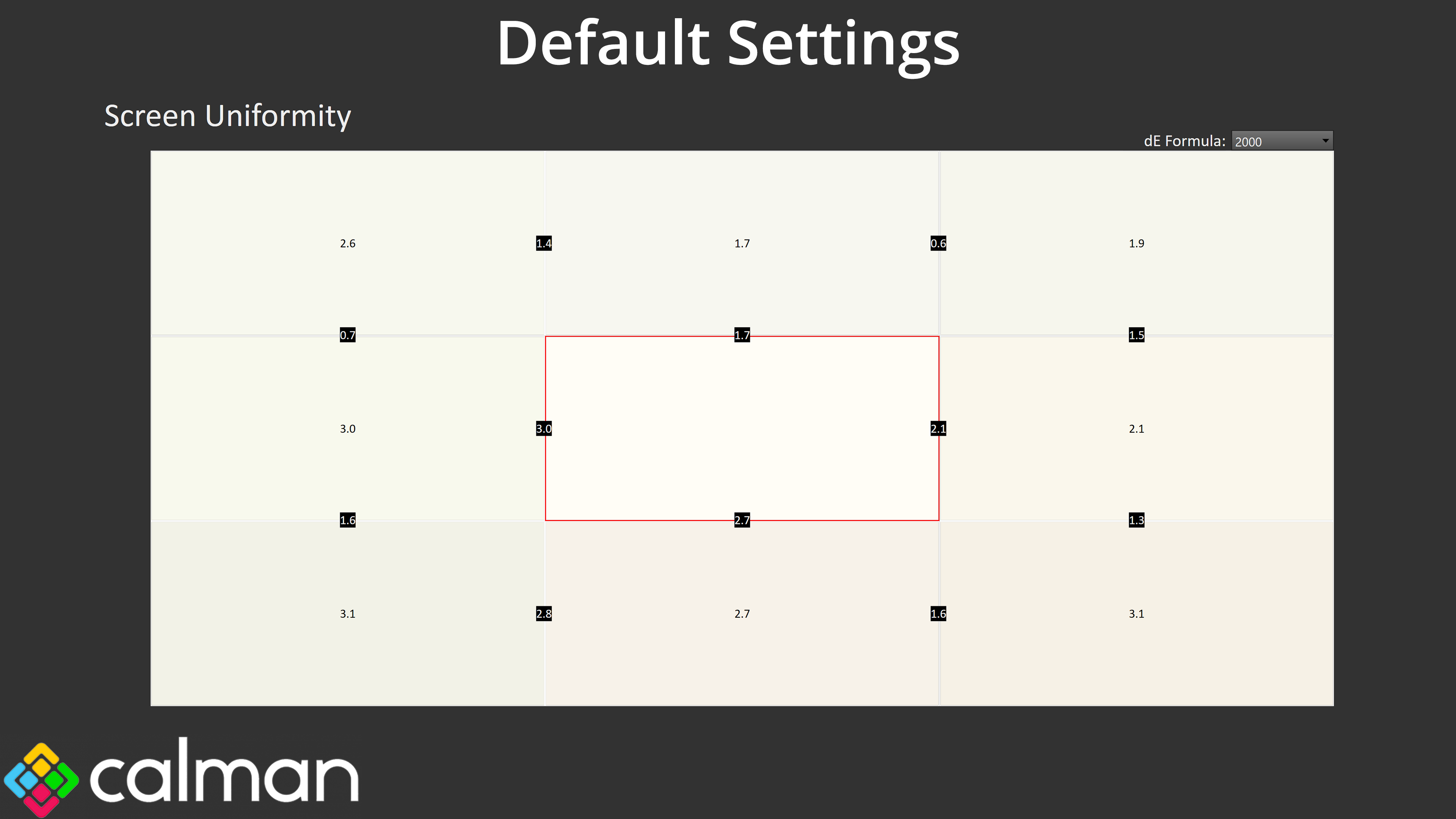 Uniformity also leaves a little to be desired. Deviation is never too significant, with the worst error being a deltaE 2000 of 3.1, but there are a few sections that come close to that level of aberration, when we'd hope for more from a pro-grade screen.