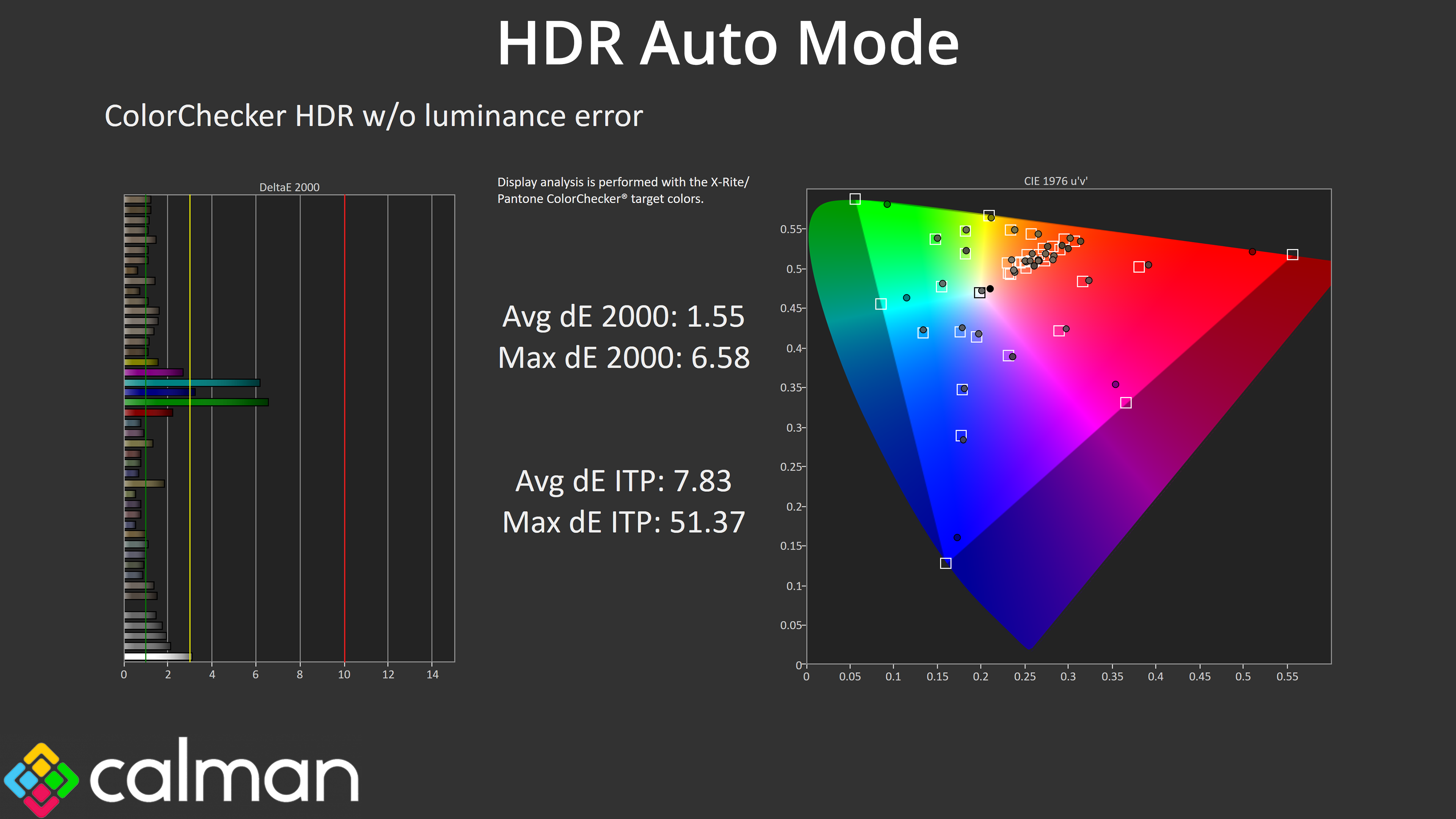Following on from the SDR results on the previous page, here we re-test the relevant areas of the display with HDR enabled.