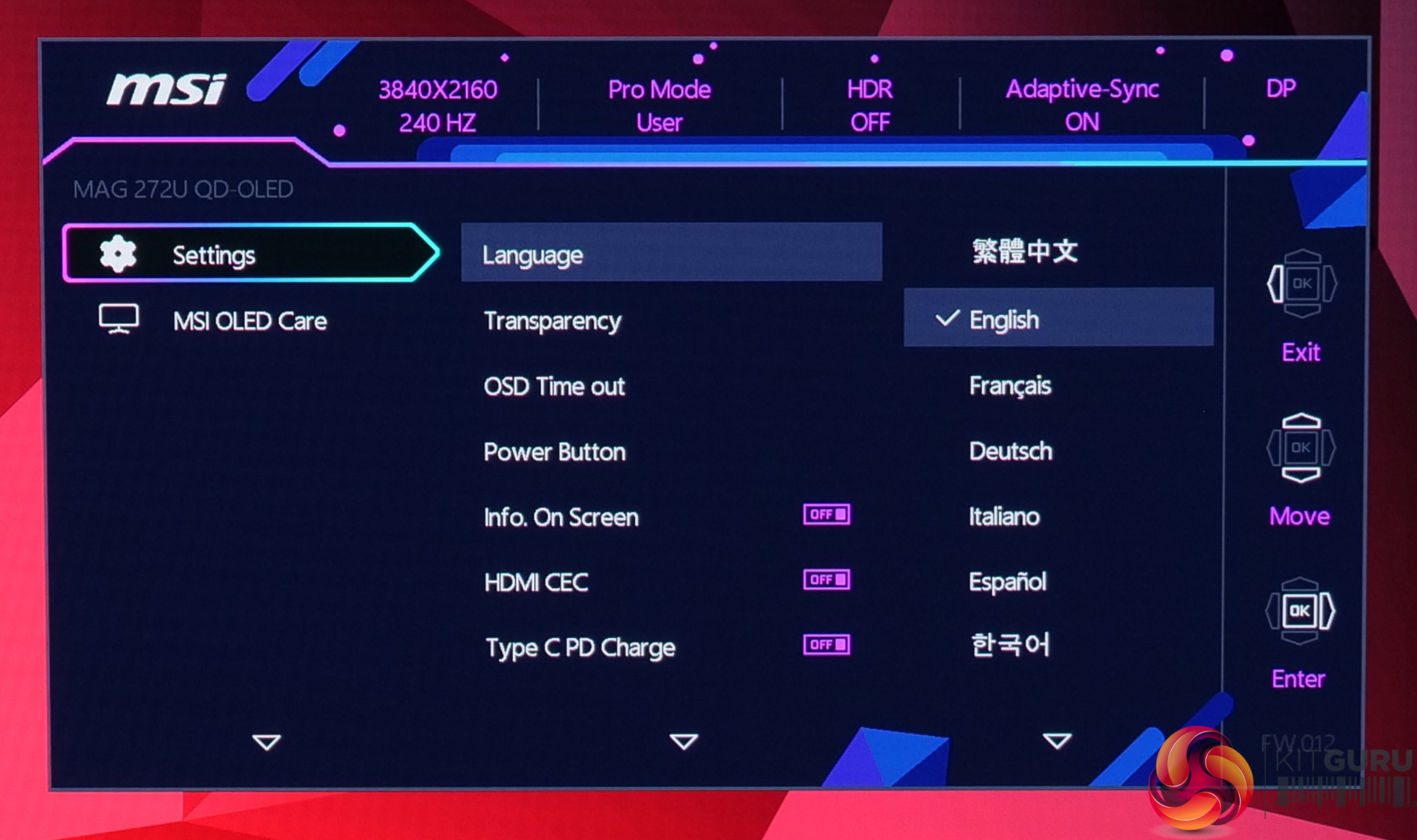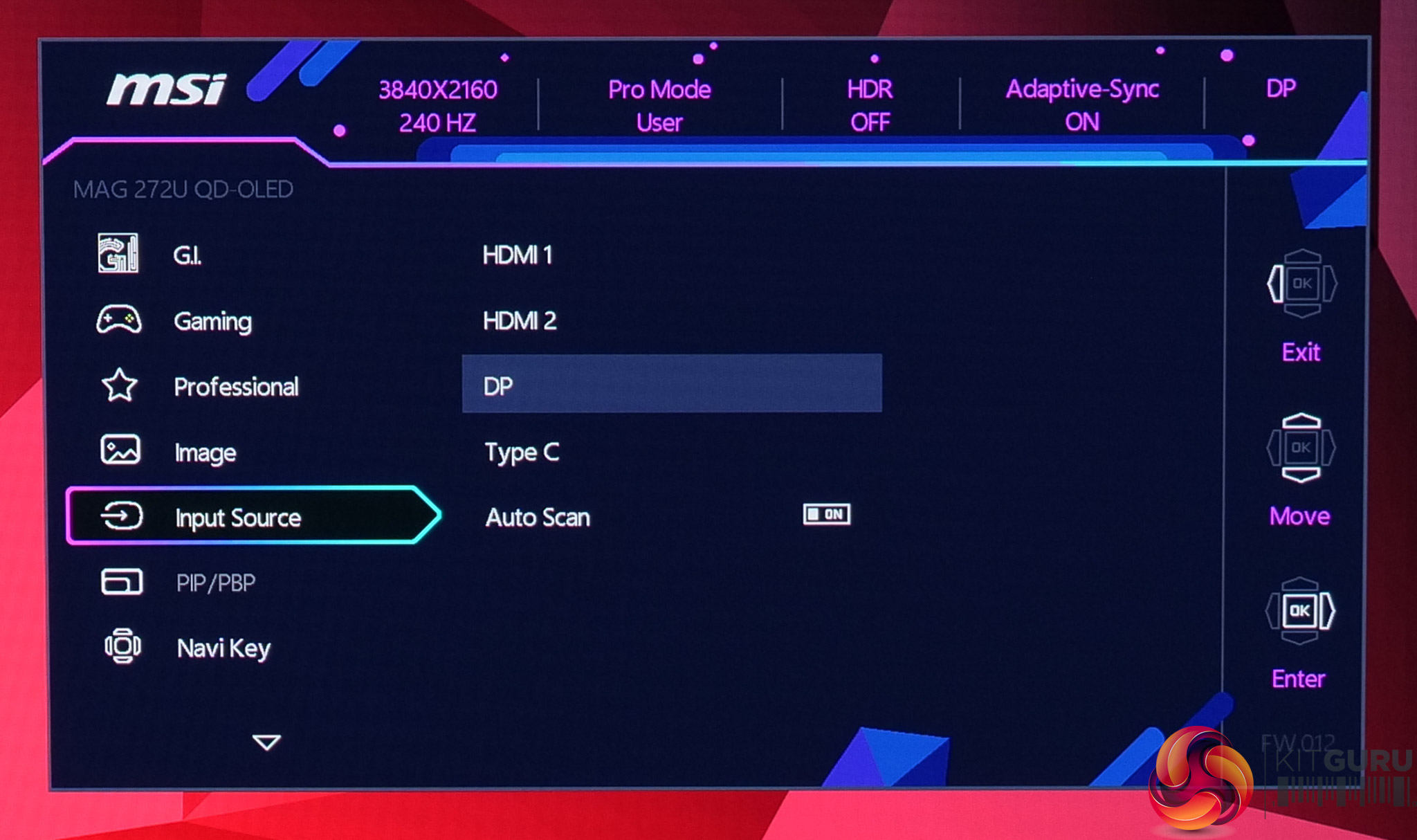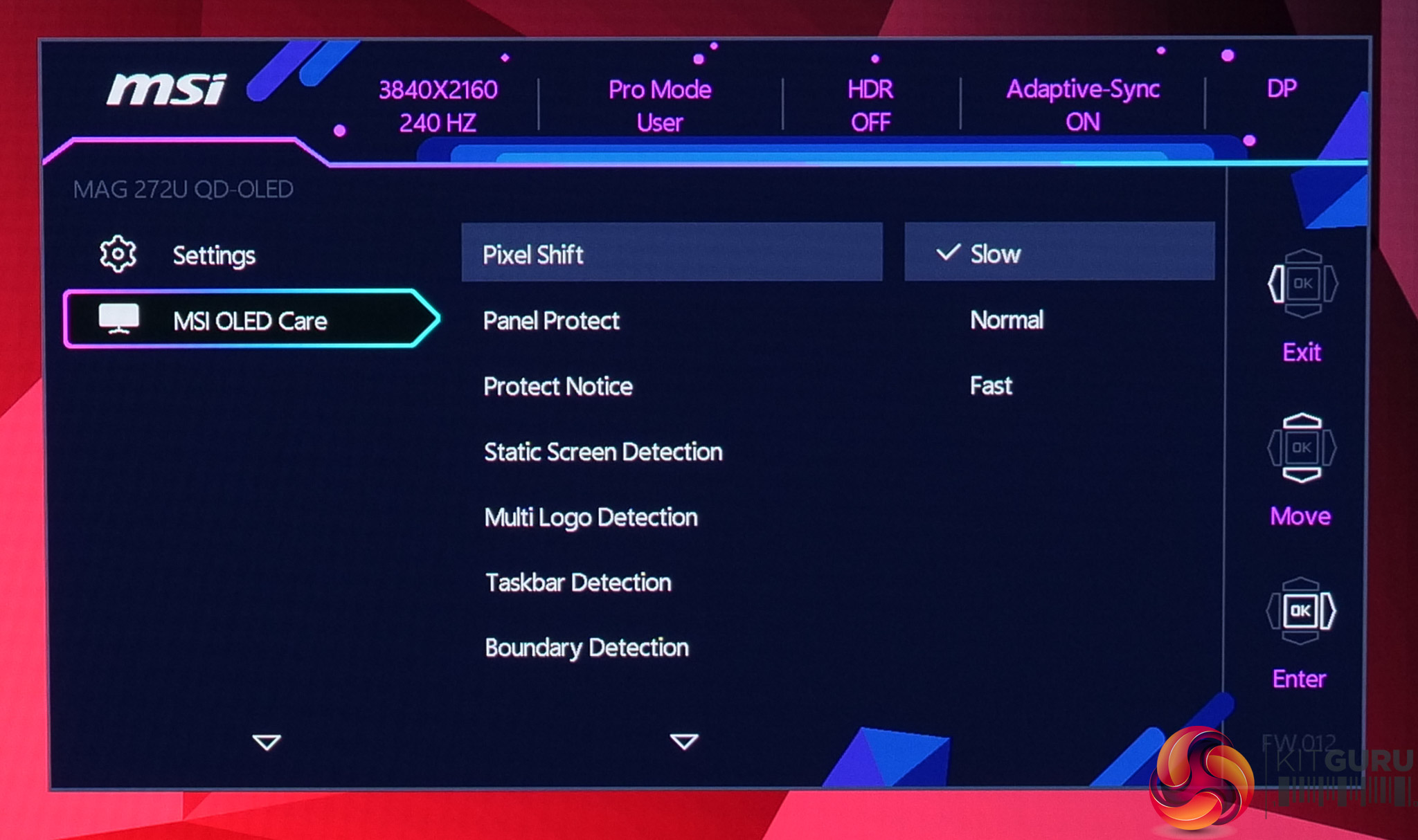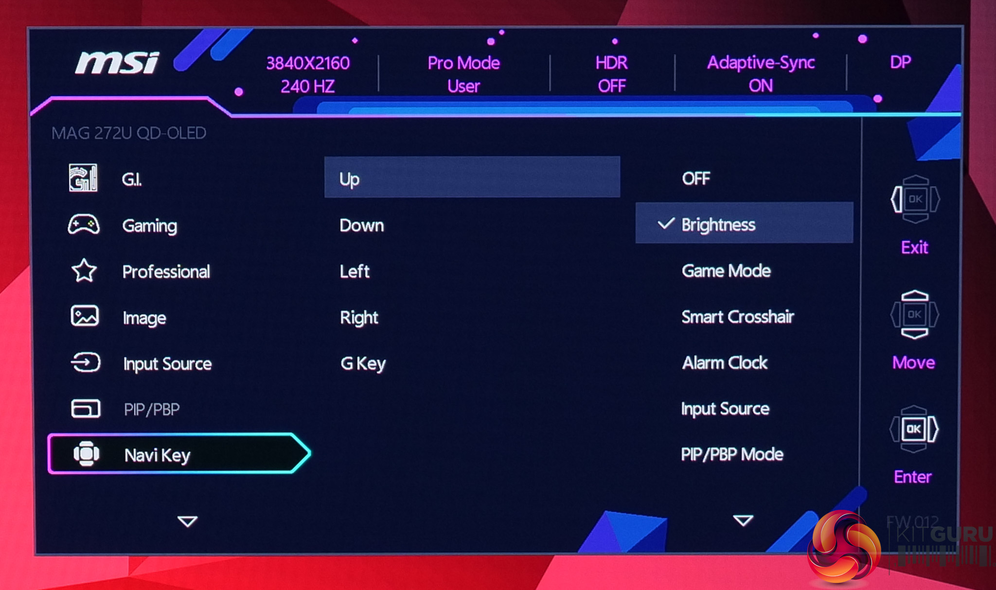 While not the newly updated and slightly cleaner design we saw on MSI's MPG 341CQR, the OSD menu is still very familiar and easy to use with the joystick. Things are sensibly laid out, too, and it's a very well-featured selection, with all the gamer-specific options we have come to expect as well as customisable white balance, an sRGB emulation mode and so on.