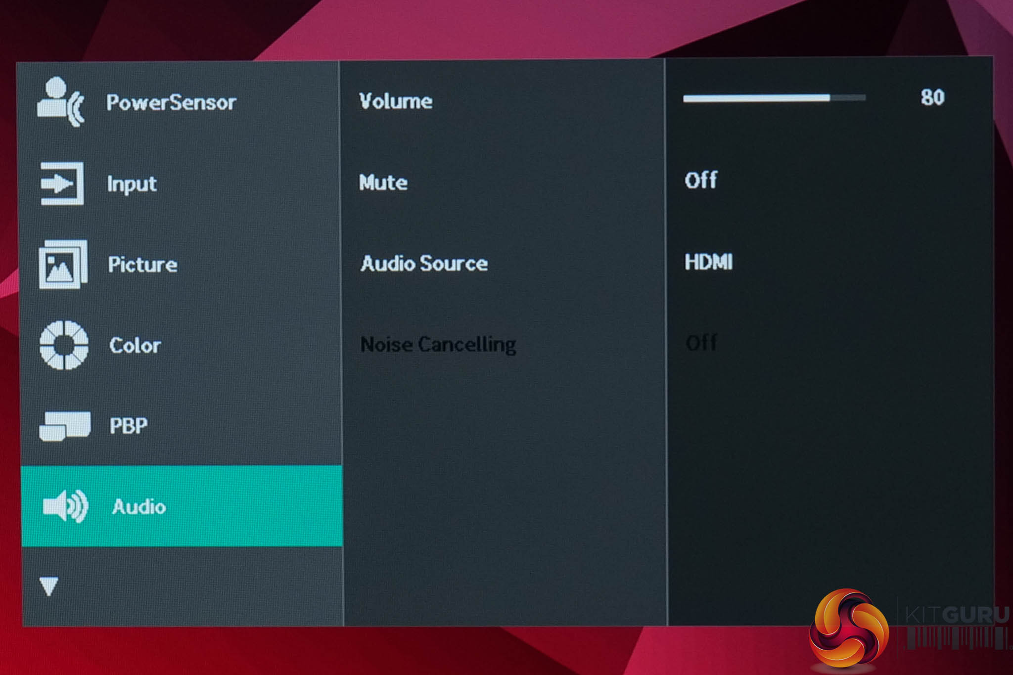 PBP allows the use of PBP/PIP functionality if you have two sources connected, while Audio gives control over the built-in 5W speakers. Language is self-explanatory, while the OSD Setting tab lets you adjust the OSD position, transparency and time-out length.