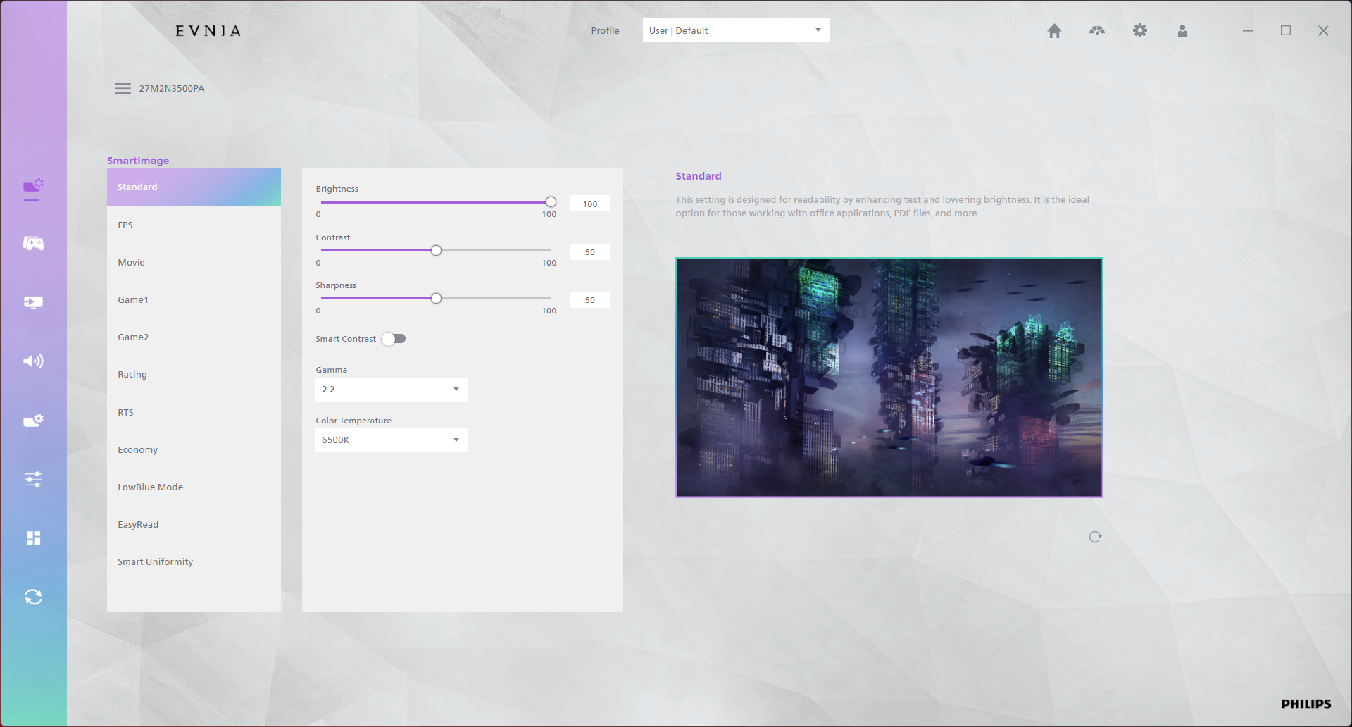 There's also the option to use Evnia Precision Center, a Windows-based piece of software that lets you adjust the monitor's settings directly from your PC. It seems absolutely fine in my usage though is occasionally a bit slow, but it's a nice-to-have extra feature.