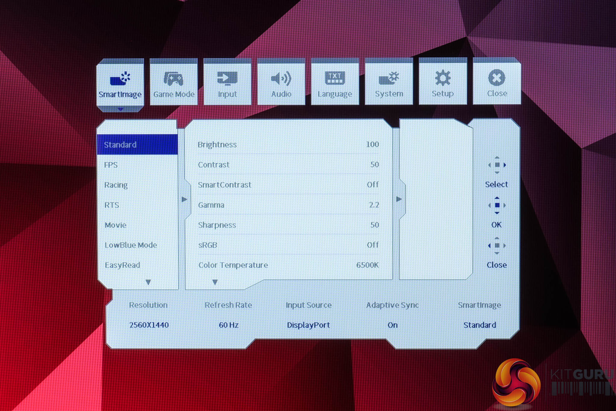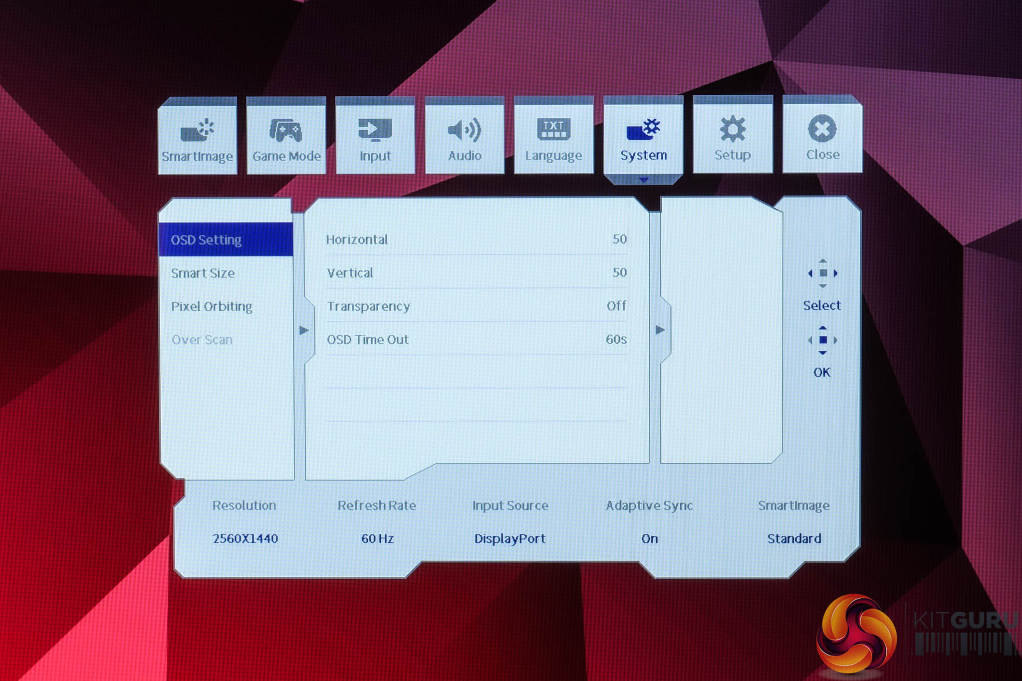 The OSD system appears unchanged since we last looked at an Evnia screen. It's certainly not the prettiest UI going, but it has a good number of features and is easy to navigate using the joystick. My only real complaint is that there are no customisable shortcut options – being able to quickly adjust brightness without diving into the main OSD itself is always a welcome feature to me.
