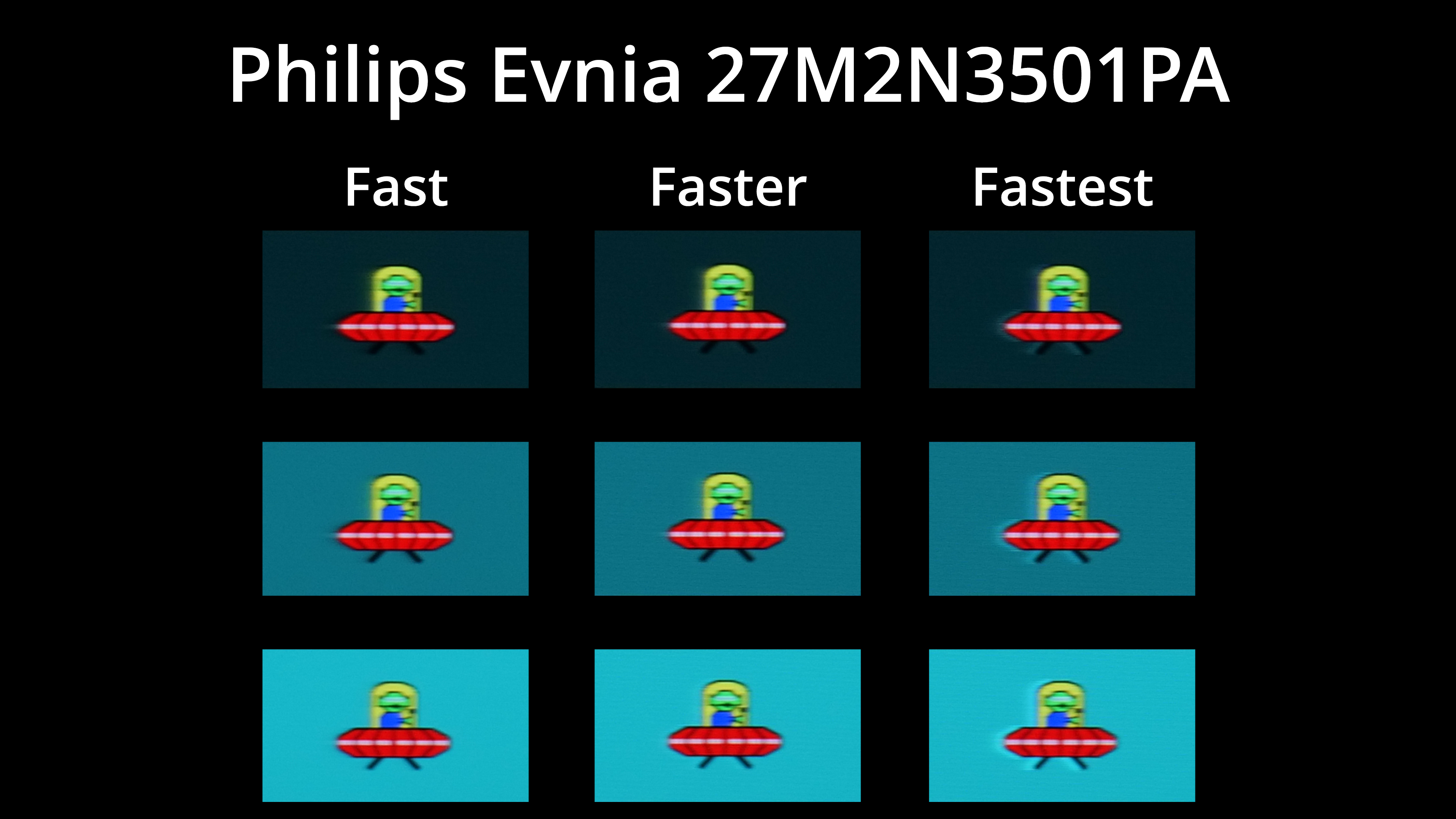 We also have a visual representation of the three overdrive modes, and overall motion clarity is very solid using the Faster mode. You can see the overshoot that's brought on by the Fastest mode too, so I wouldn't recommend that one!