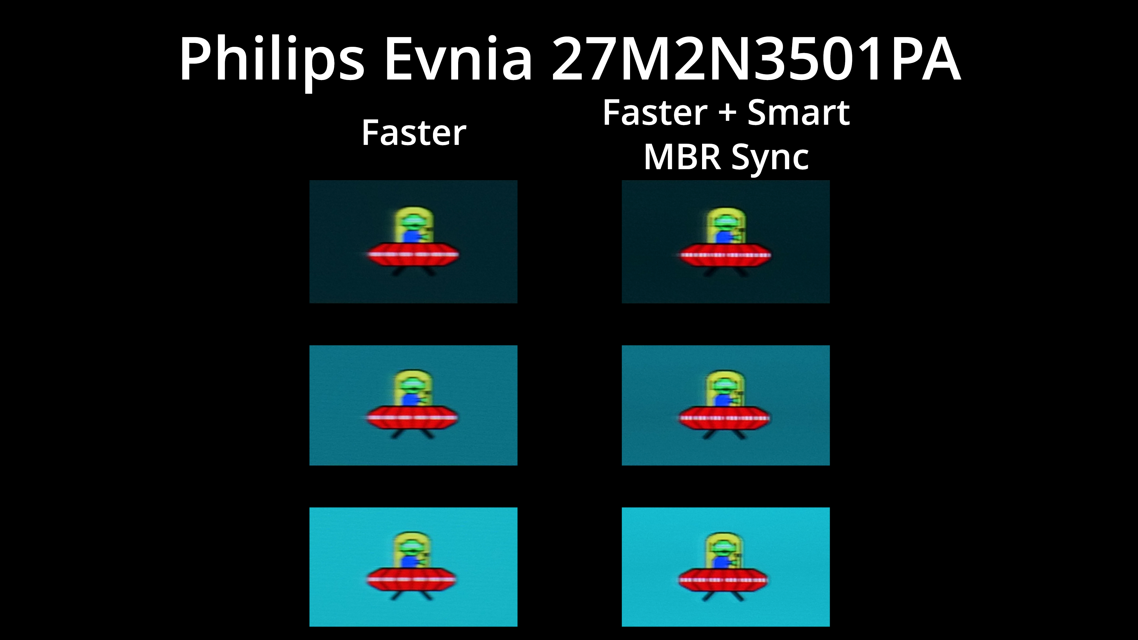 Evnia also includes Smart MBR Sync, which is a backlight strobing mode that does work with adaptive sync. The good news is that it doesn't cap brightness, unlike some other screens, and it works reasonably well – it does default to the Fastest overdrive mode for some reason, but you can manually change that in the OSD. There is just a hint of signal crosstalk, resulting in a small double-image effect, but it could be worth using if you are looking for another boost to motion clarity.