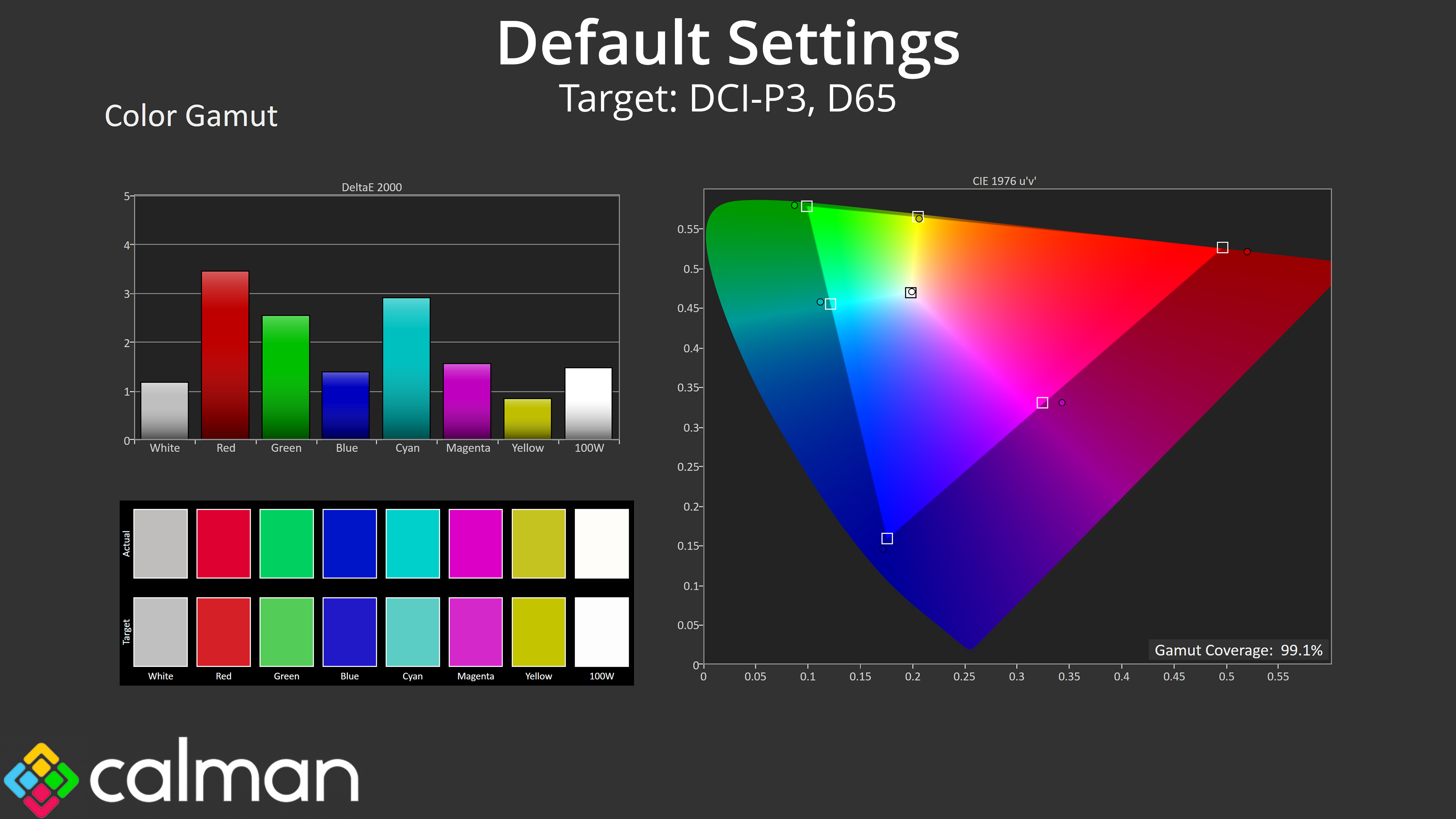 For peak performance we ran through a full calibration using Calman Ultimate. I can't imagine too many people will be calibrating a budget OLED, but you never know and the results go to show what the panel is capable of if you have the right software and hardware tools.