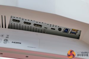 Lastly, we come to the connectivity. Here there's a total of four video inputs, 2x HDMI 2.0, 1x DisplayPort 1.4 and 1x USB-C which supports DP-Alt mode as well as 90W power delivery. I have to say it is a definite shame to see HDMI 2.0 ports here, and not HDMI 2.1 – this means you're limited to 100Hz at 3440×1440 when using a HDMI cable, a real missed opportunity in my opinion as there's no hardware G-Sync module, so no need to compromise.