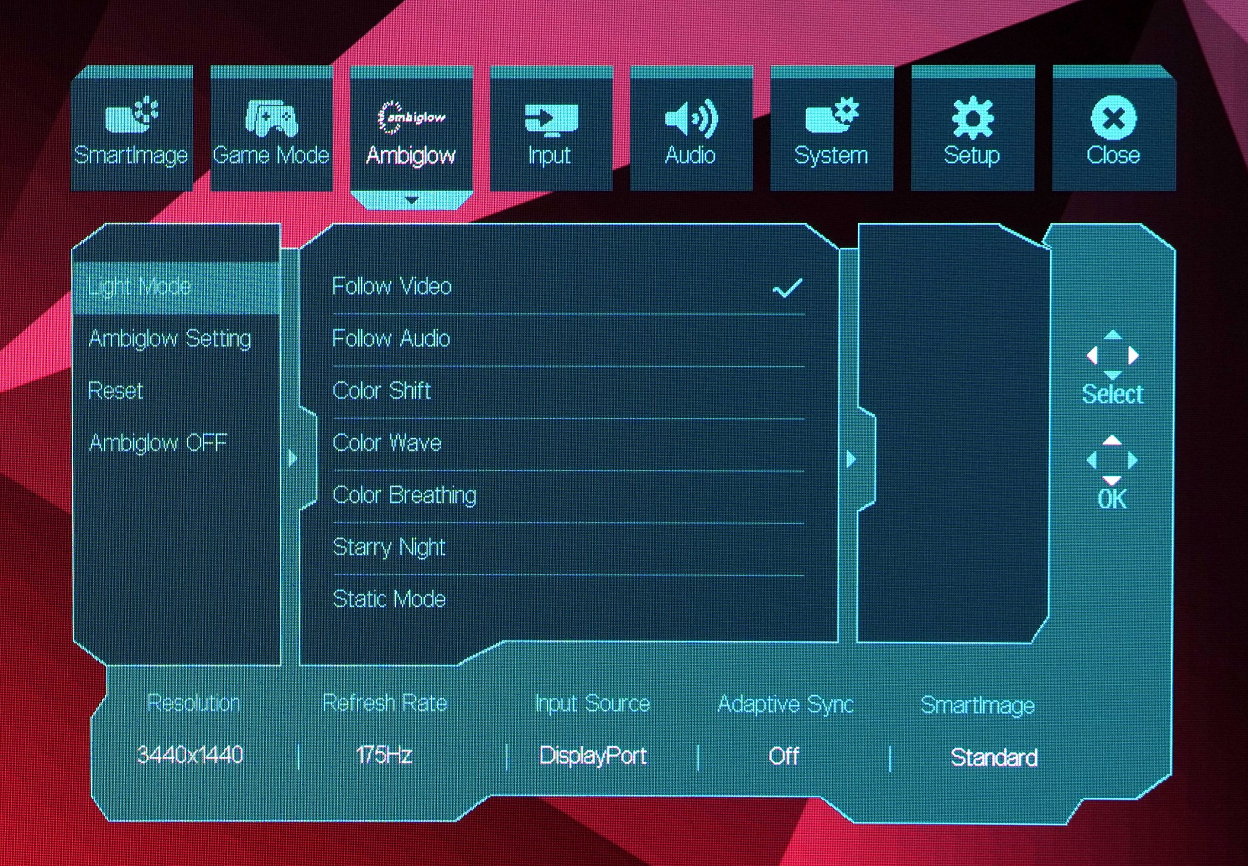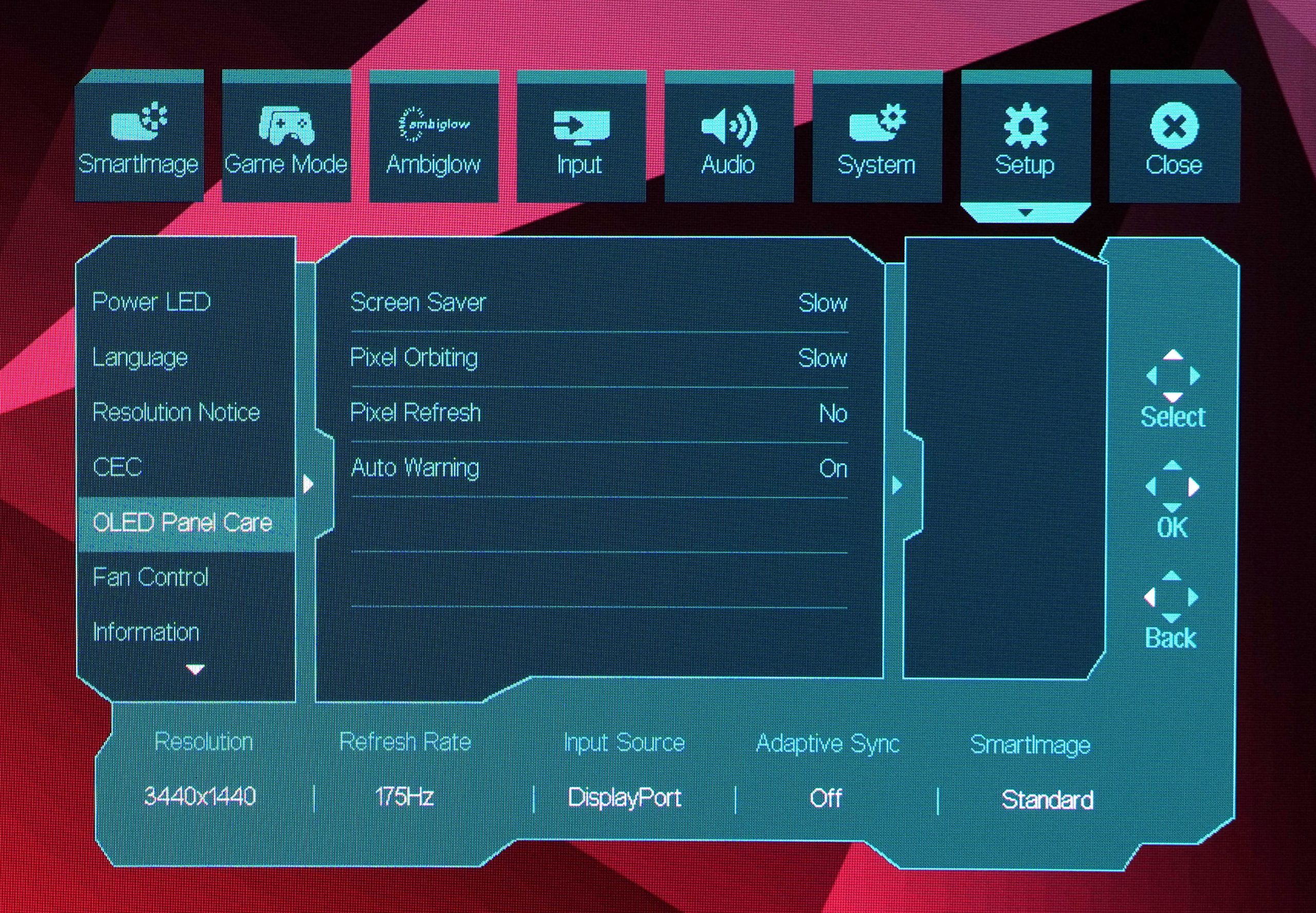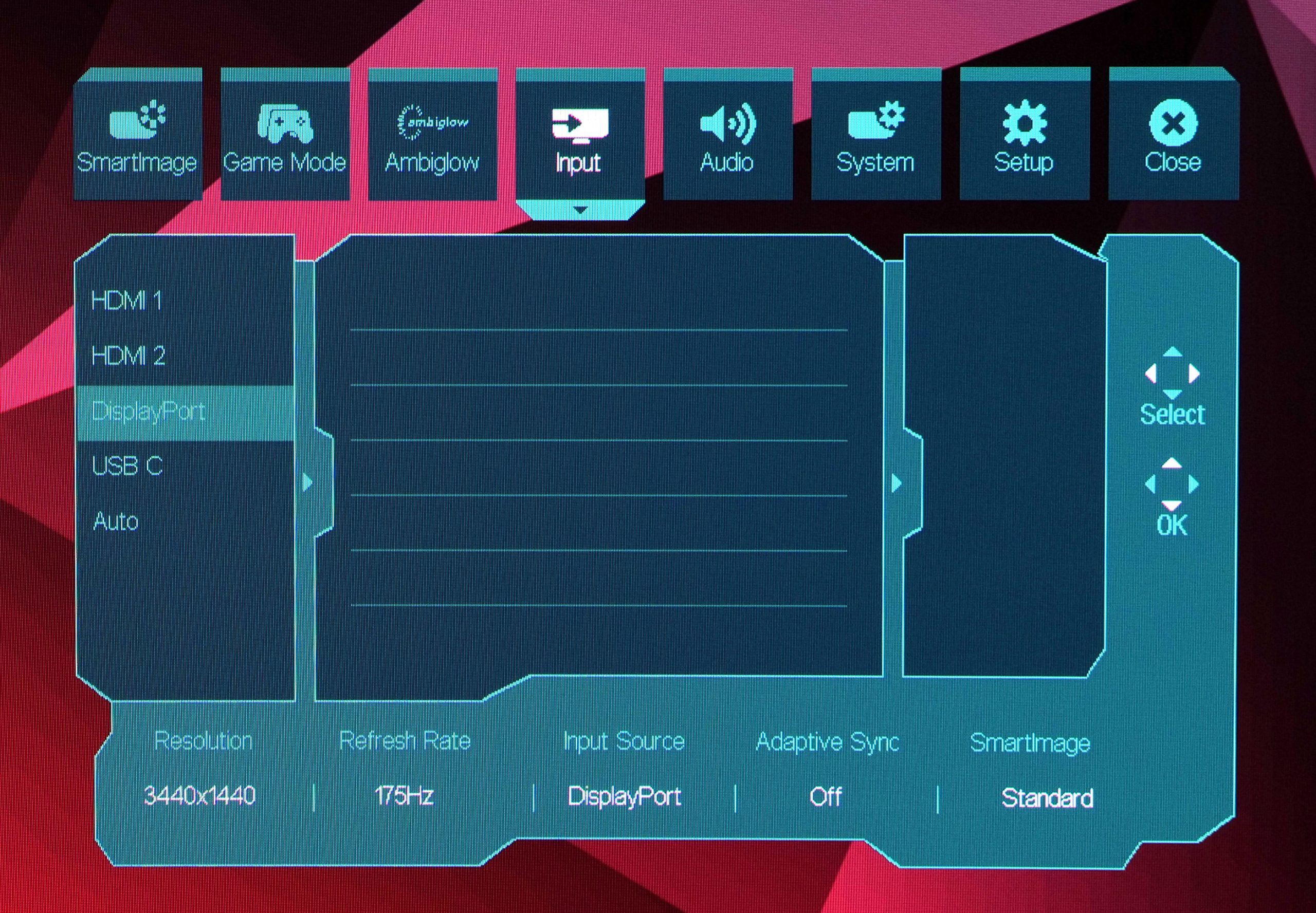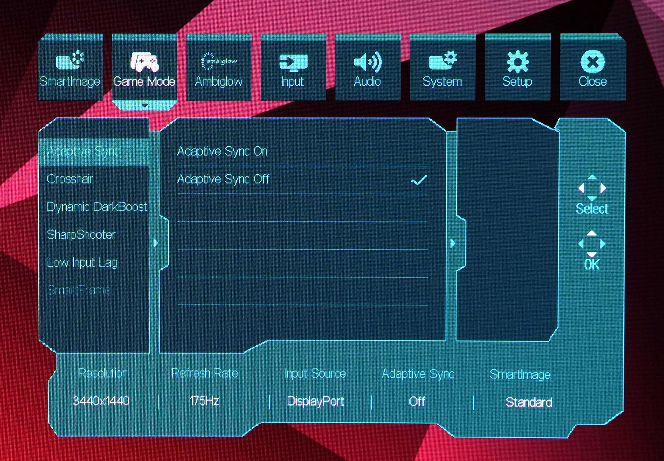 To be honest, the OSD used by Evnia here is pretty ugly and doesn't match the clean and modern aesthetic that exudes from the design of the monitor itself. It works well enough and things are mostly easy to navigate with the OSD. That said, it does confuse me slightly that instead of clicking the joystick to ‘accept' or enter a particular setting, you have to push the joystick to the right – it's not the end of the world but it takes some getting used to.