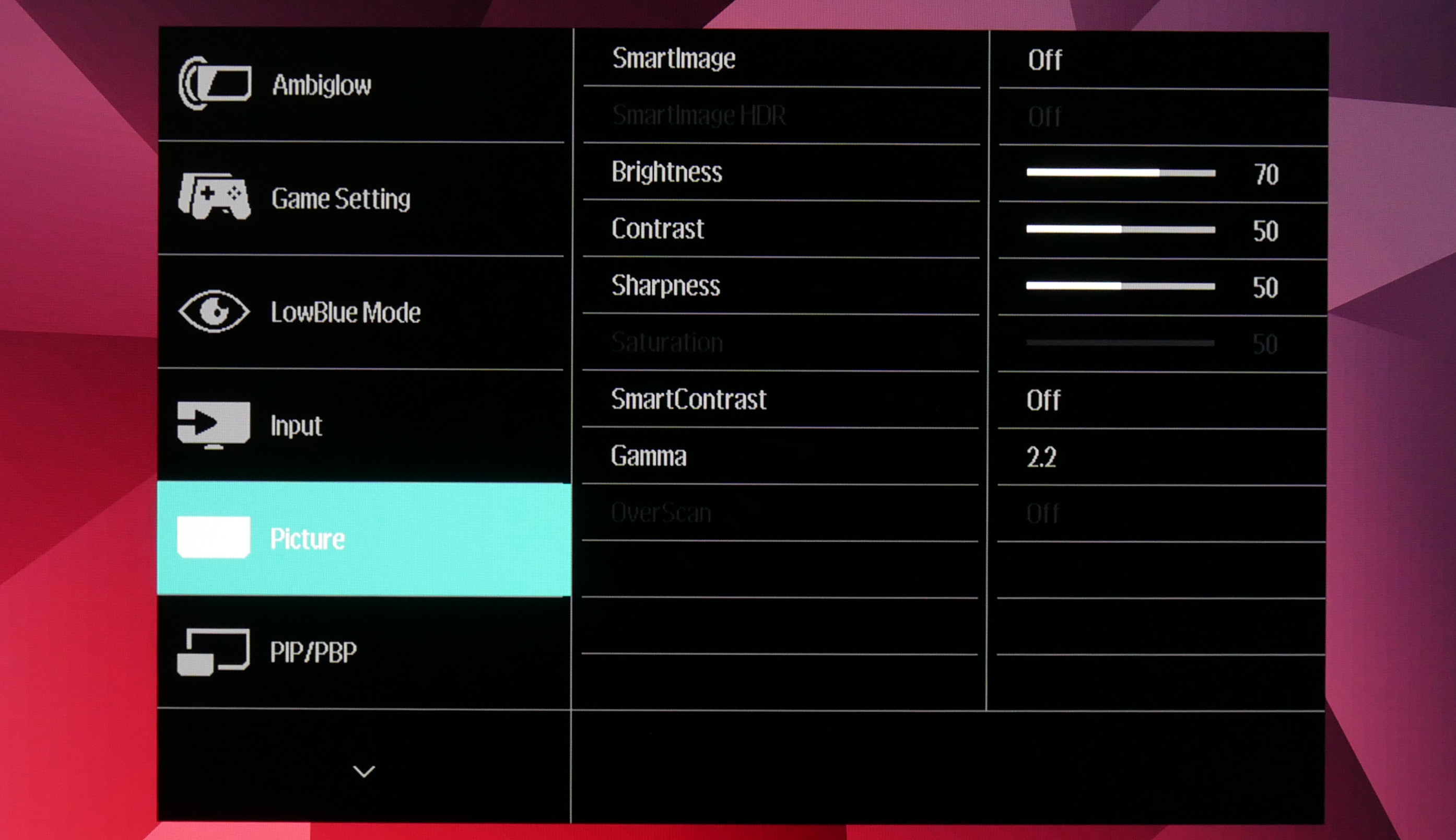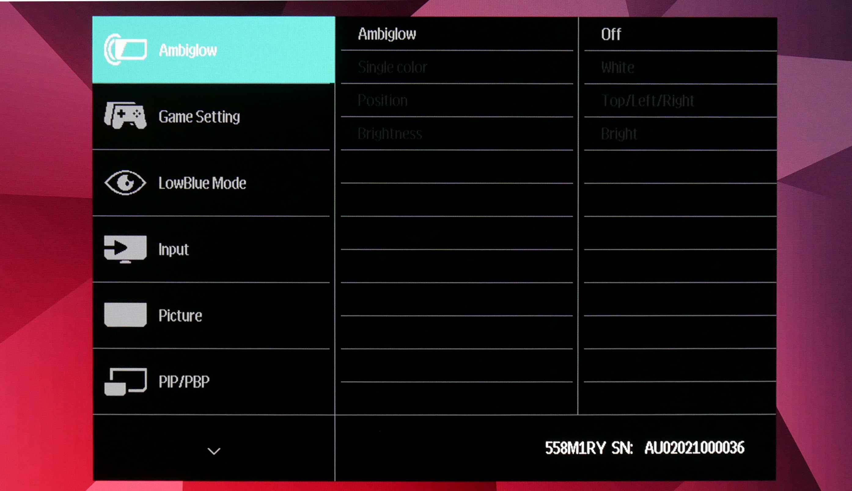 Thanks to the included remote control, navigating the OSD is dead easy with the Momentum 558M1RY. There's a total of 12 different tabs that can be accessed via the remote, while volume and brightness have their own dedicated buttons so you're not constantly diving into the settings to adjust those values.