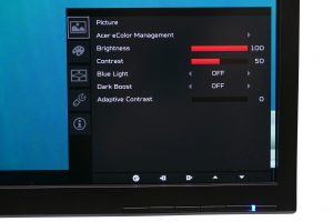 The Acer eColor Management option offers up five shortcut options for changing the over settings of the monitor, with choices of User, Eco, Standard, Graphics and Movie. We never saw a need to change this from the default user option.