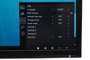 The next menu page offers a selection of basic OSD settings like language and OSD timeout plus this is where you store your settings for the Game Modes.