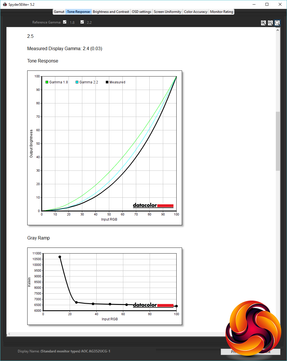 Next up is the tone response, or gamma, test. The gamma value affects how light or dark an image is, with a higher value resulting in dark portions of an image looking darker. The computing standard is 2.2, and although the screen has a setting that reports to be 2.2, it doesn’t quite meet that in our tests, instead coming just short at 2.1. This is close enough not to worry us too much, though.