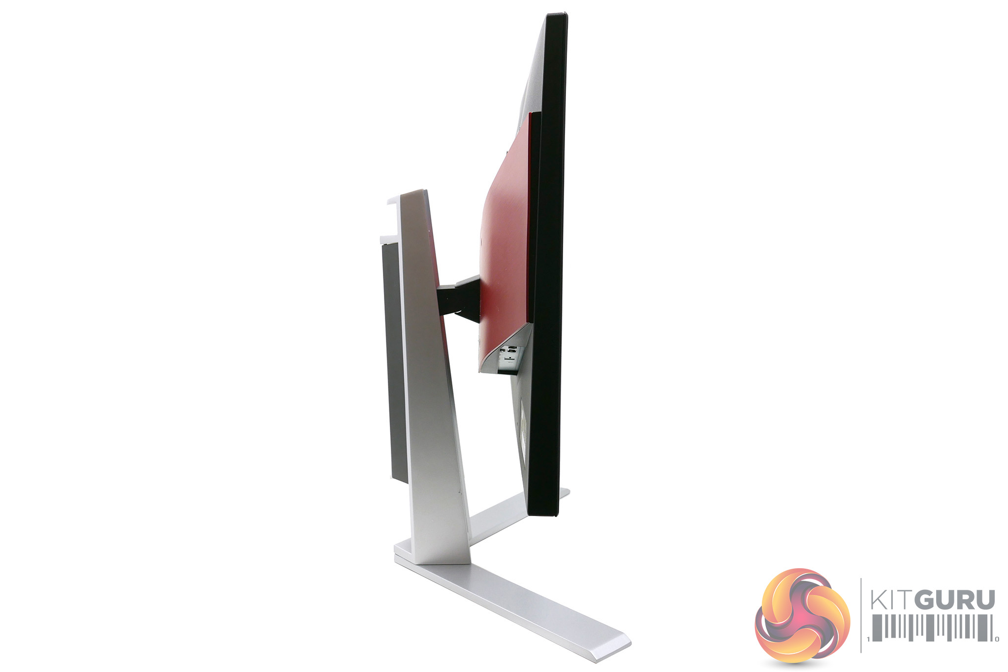 Meanwhile, round the back the “gamer” styling is cranked up several notches as the mostly matt black plastic rear is bisected by a large “V” shaped red section. It’s not too garish but a paragon of style it isn’t. Nonetheless, overall build quality is excellent, with a sturdy feel to both the stand and the display.
