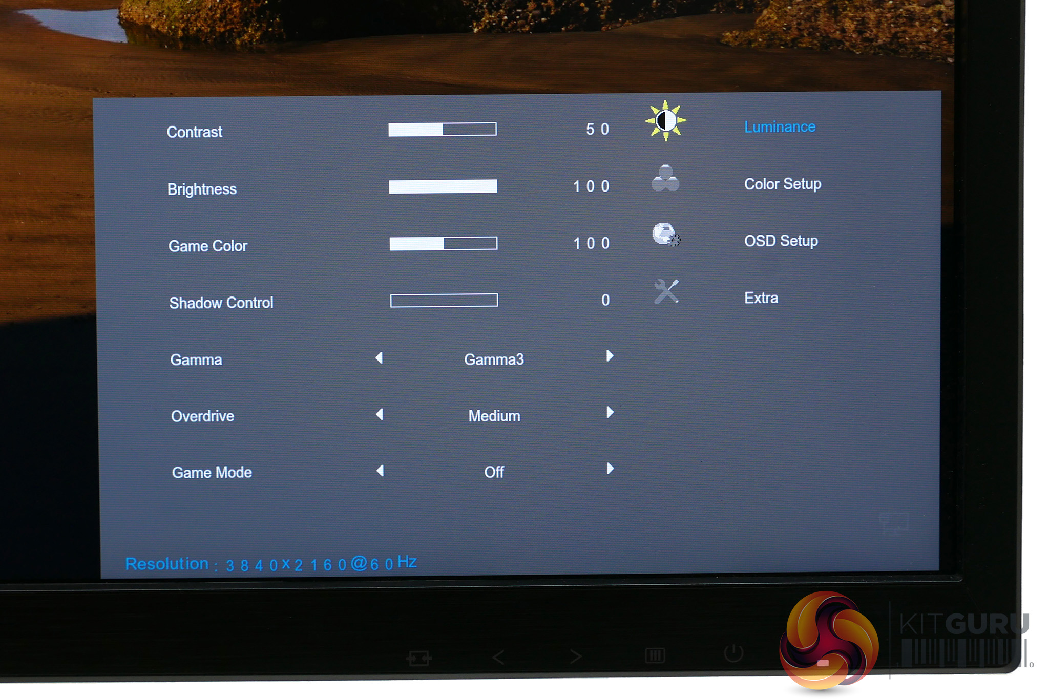 The overdrive setting is the main means of adjusting the gaming performance of this monitor. Its default setting is Medium but it also offers Weak, Light and Strong settings, as well as the option to turn it off completely. We were happy with Medium as it offers a good balance of improved pixel response without too many of the artefacts introduced by overly aggressive overdrive.