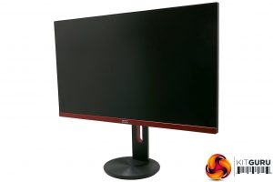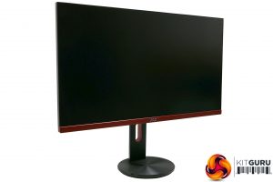Also helping is the overall styling. While there are “gamer” centric flashes in the red chin bezel and cable routing hole in the stand, the darker metallic tone remains understated. Silver might have been an even better choice but the red adds a touch of interest.