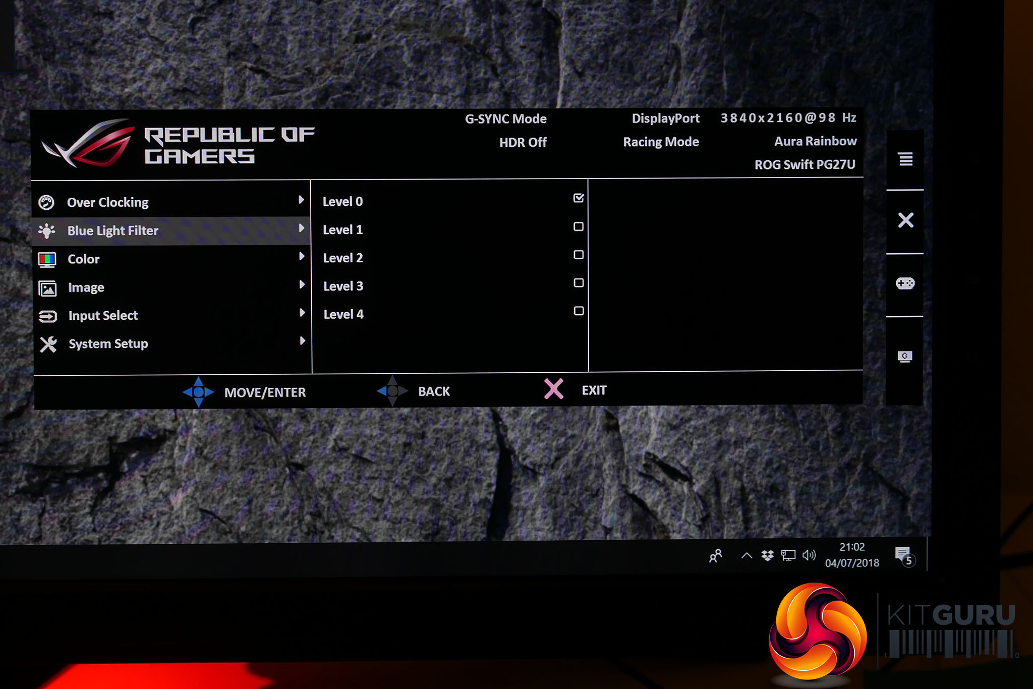 Next up is the blue light filter menu which is where you can reduce the overall blue light level of the display. This can help reduce eye strain, especially when using a display late at night.