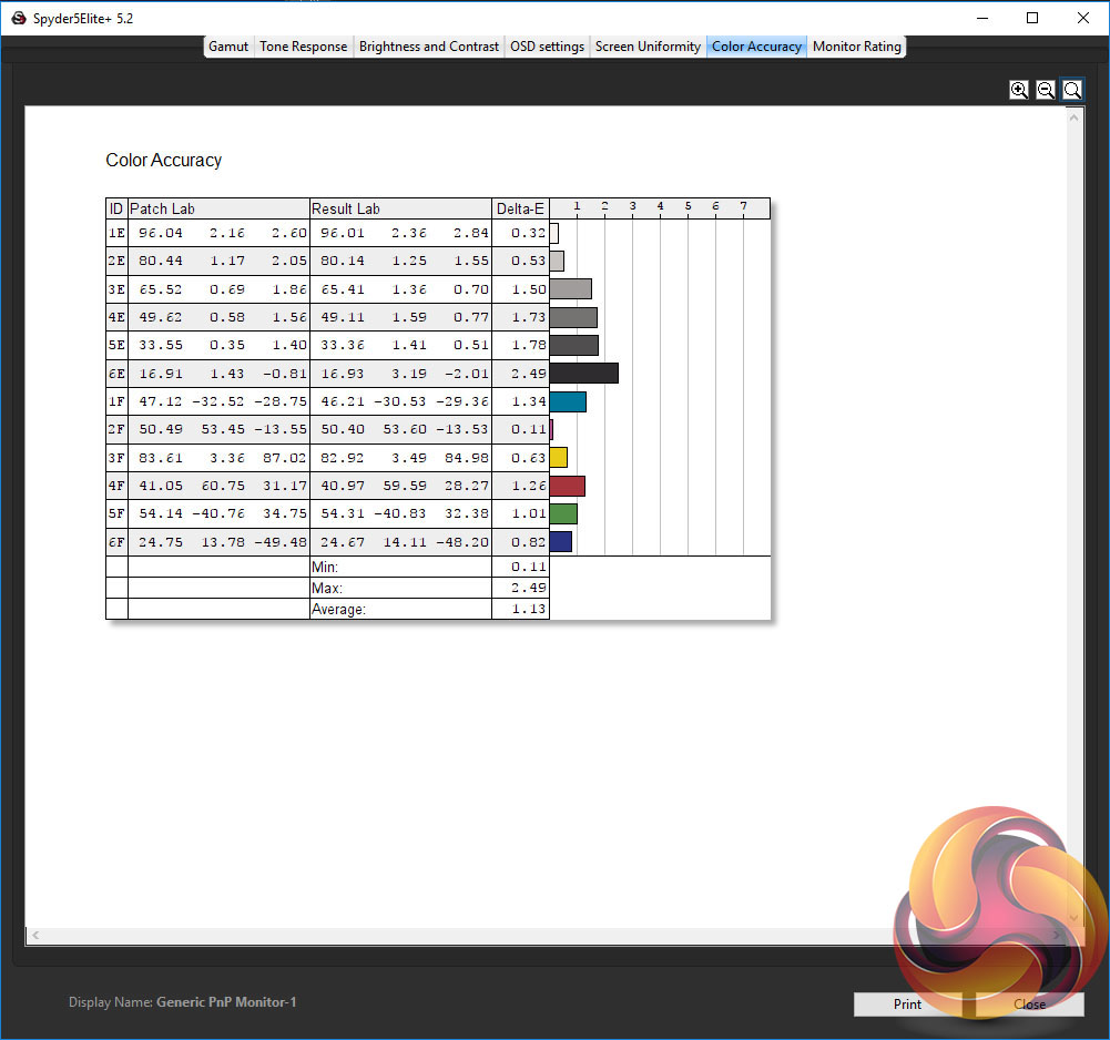 Overall colour fidelity is also impressive. A Delta E score reveals how fine a difference between colours a display can show, with a lower score being better. An average of 1 or below is excellent, while below 3 is good, so this display’s score of 1.13 is impressive.