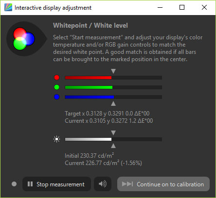 So that’s the default image quality but displays can also be calibrated, which is what we did. As mentioned earlier, all it took to bring colour balance into line was changing the colour balance settings from 50x50x50 to 50x50x47 (RGB). The rest of the calibration process was done automatically in software.