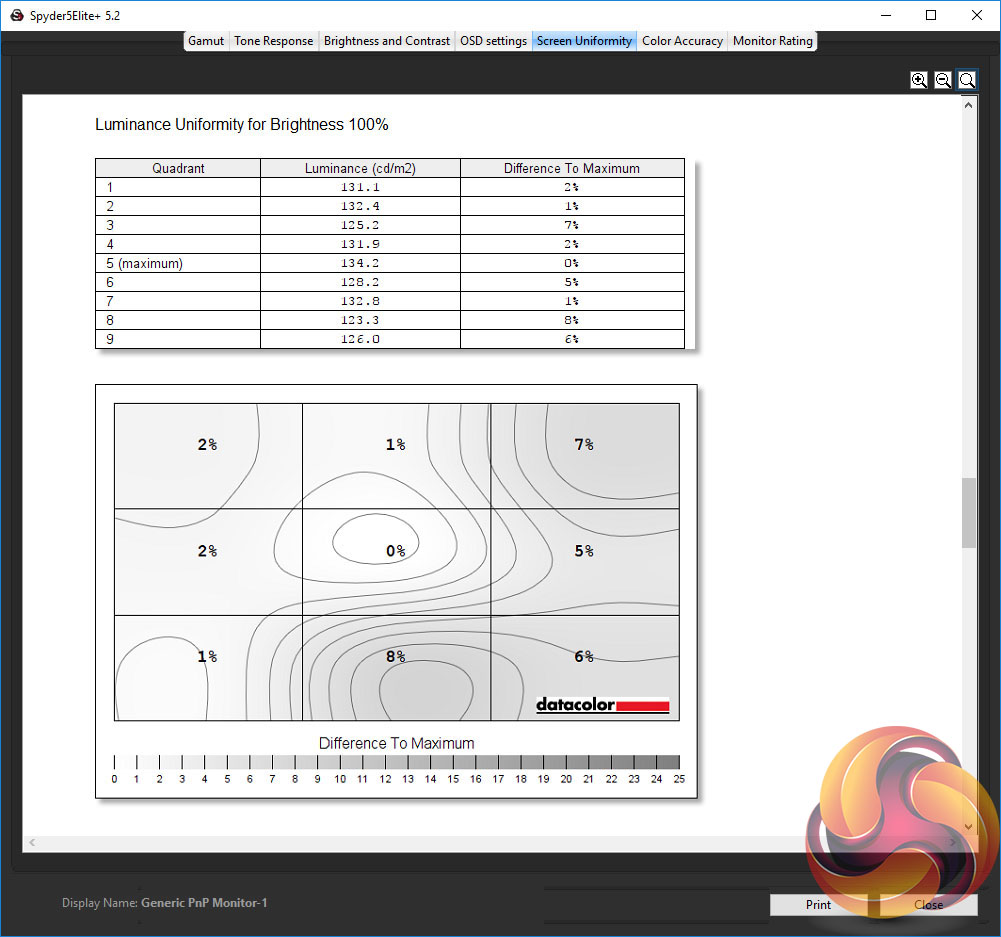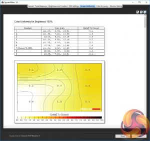 Finally, we come to the overall uniformity of the display’s image and here the MAG271CR again impresses. Its brightness varies by just 3.5% on average across its entire surface while colour accuracy also varies by just 1.4%. Both are excellent results.