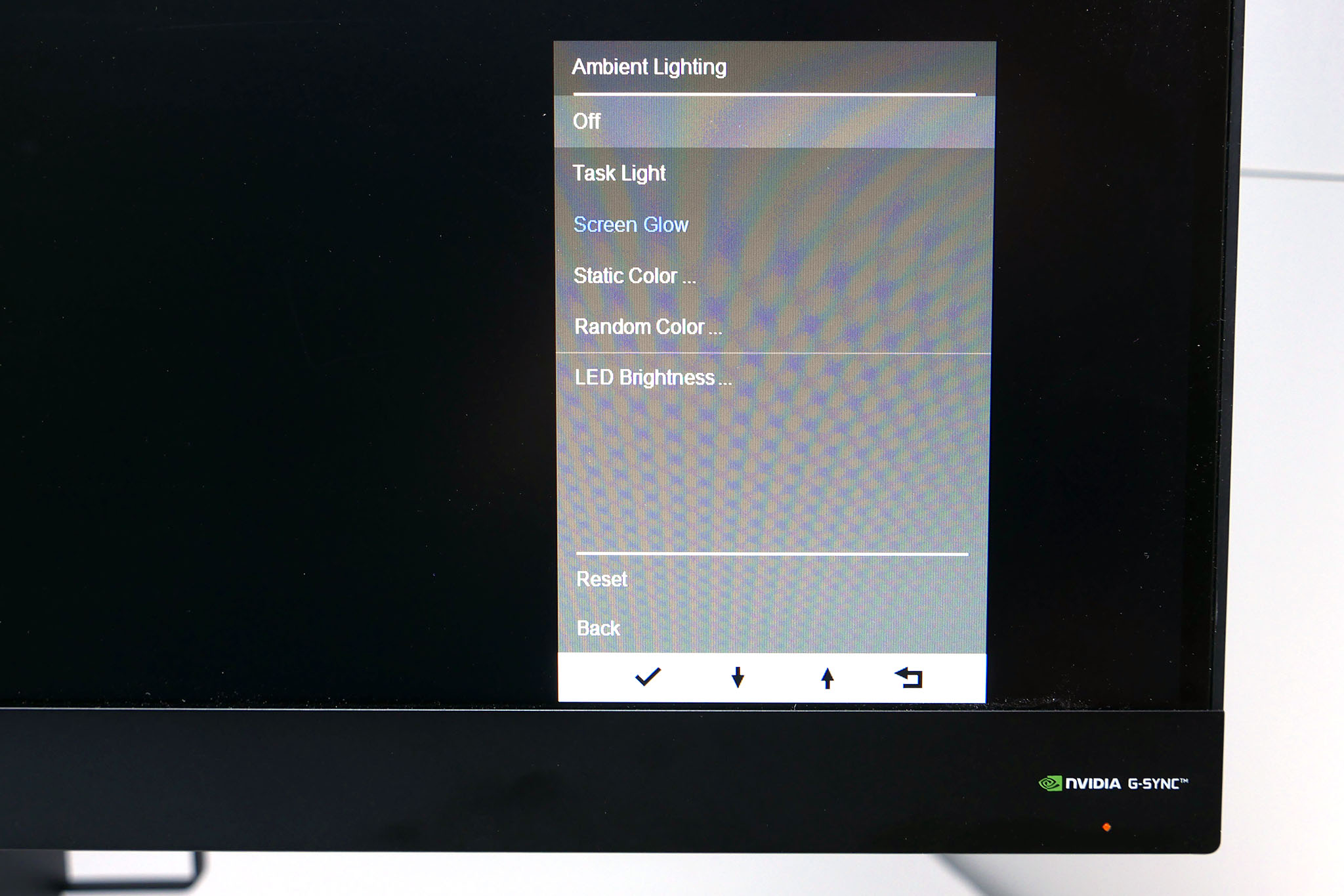 The only other menu option of note is the Ambient Lighting menu. Here you can set the underlighting to a fixed colour, a random colour or have it change in accordance with what’s on screen. You can also adjust the brightness and turn it off completely.