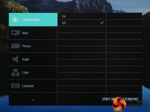 Showcasing the business-oriented status of this monitor, the first option in the menu is the low blue light mode. This reduces the amount of blue light emitted by the backlight, which helps reduce eye strain late at night.
