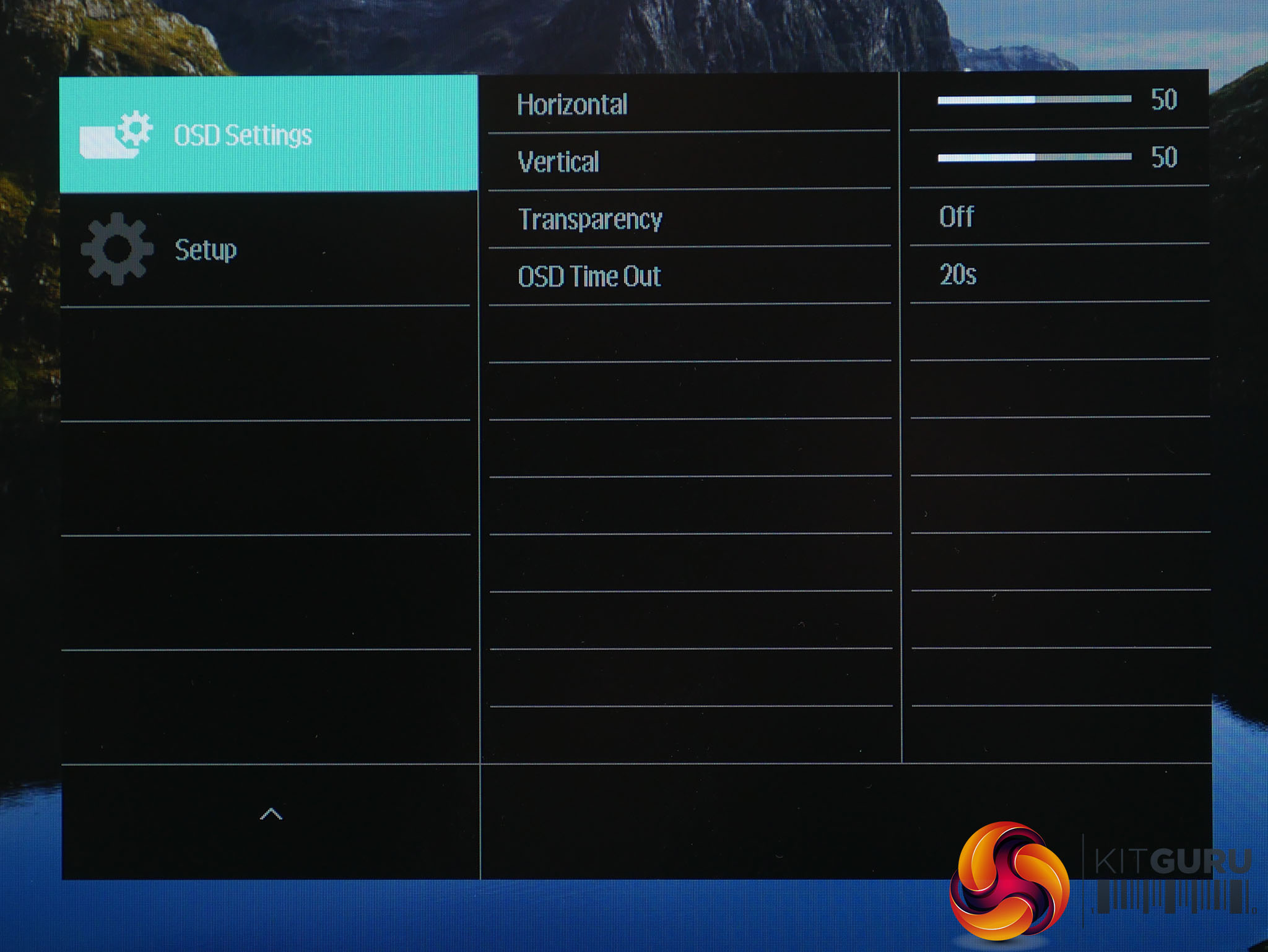 Next up is that comprehensive language menu, then it’s the OSD Settings that allow you to change the position and transparency of the menus.