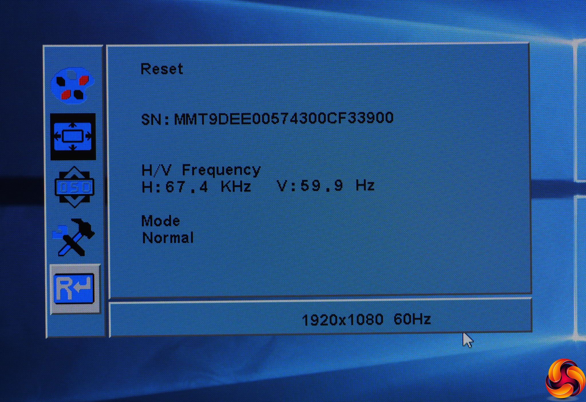 The next menu option is for positioning an analog signal, which we weren't using, so we move directly to the next one after that, which controls the positioning and transparency of the OSD.