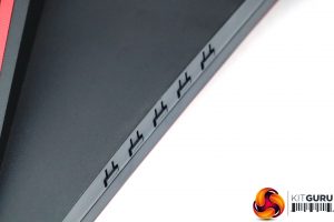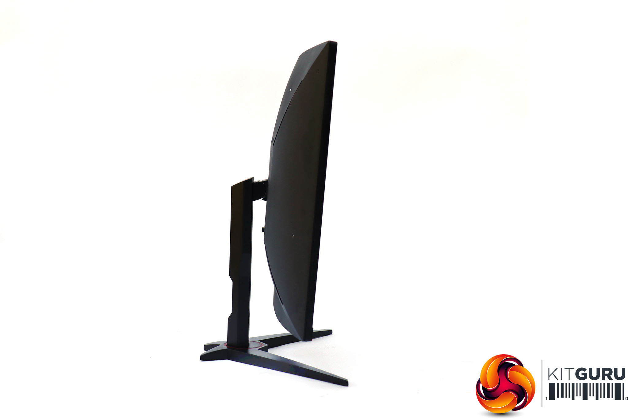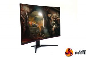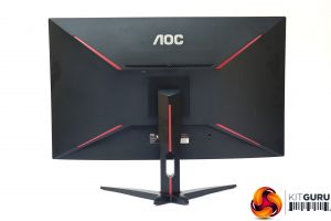 This is an attractive screen with a thin bezel at the top, left and right, and not much thicker at the bottom. The subtle deep red elements provide a sober gaming stylishness. This is the standard look for AOC's gaming screens. The stand is an angular cross, whilst the 1800R curvature is fairly subtle, unless you look from above.