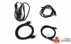 The cable inclusions are relatively mundane, with just a DisplayPort, USB upstream, and kettle lead coming in the box. There is also a USB-C / Thunderbolt 3 cable, too.