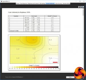 Our main test involves using a DataColor Spyder Elite 5 Colorimeter to assess a display’s image quality. The device sits on top of the screen while the software generates colour tones and patterns, which it compares against predetermined values to work out how accurate the screen is.