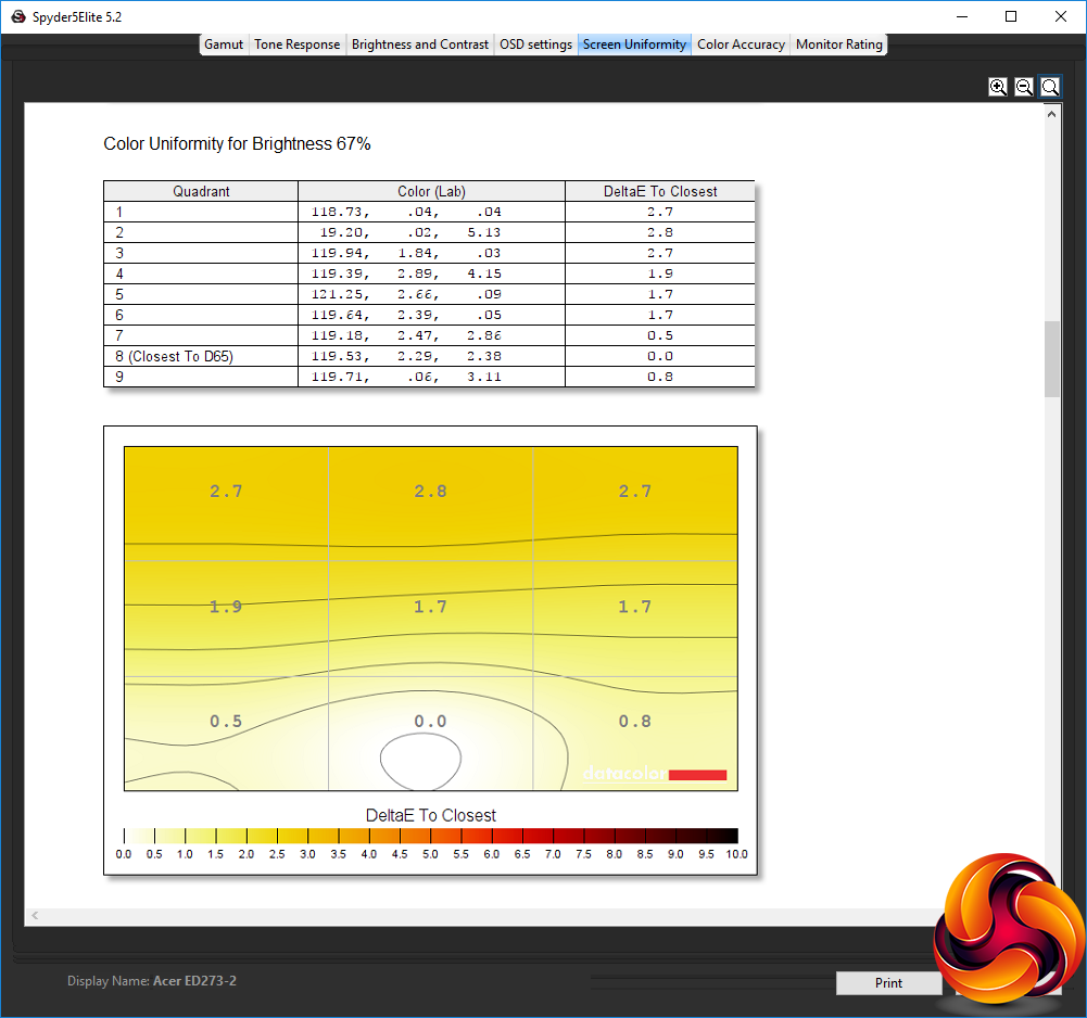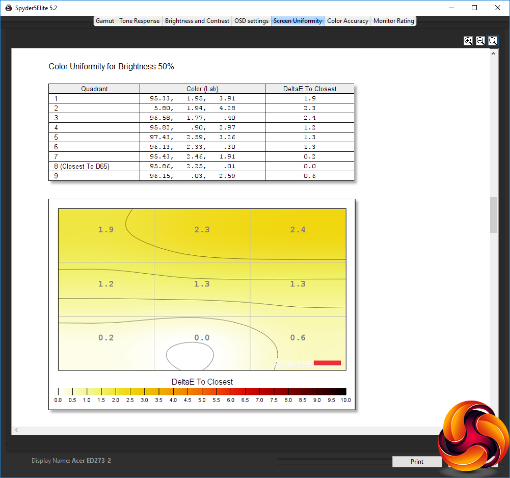 Brightness uniformity isn't particularly great either, with a considerable deviation along the top edge, and almost as large a deviation on left and right.