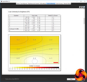Our main test involves using a DataColor Spyder Elite 5 Colorimeter to assess a display’s image quality. The device sits on top of the screen while the software generates colour tones and patterns, which it compares against predetermined values to work out how accurate the screen is.